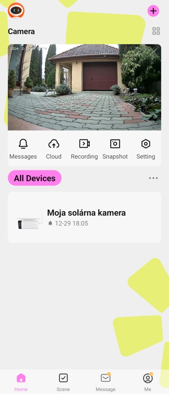 V aplikácii potom vyberiete Wi-Fi sieť, na ktorú bude kamera pripojená. Musí to byť 2,4 GHz Wi-Fi sieť a v aplikácii musíte zadať jej heslo. Následne aplikácia zobrazí QR kód, ktorý načítate pomocou objektívu kamery. Tým je celé párovanie hotové a kameru môžete používať. Naozaj pre ňu nepotrebujete naťahovať žiadne káble, v dodávke je držiak, pomocou ktorého ju pripevníte na stenu na dome.
