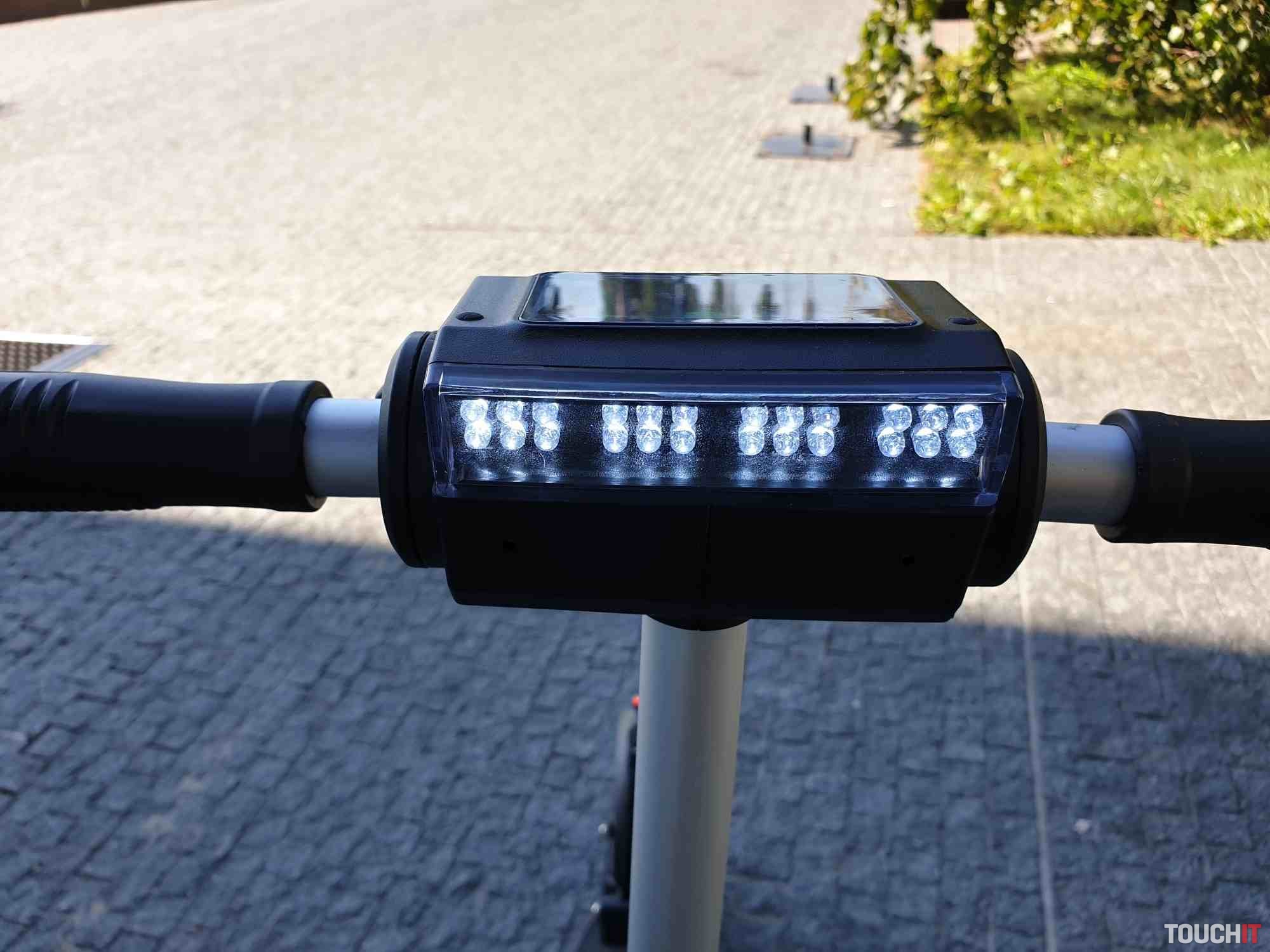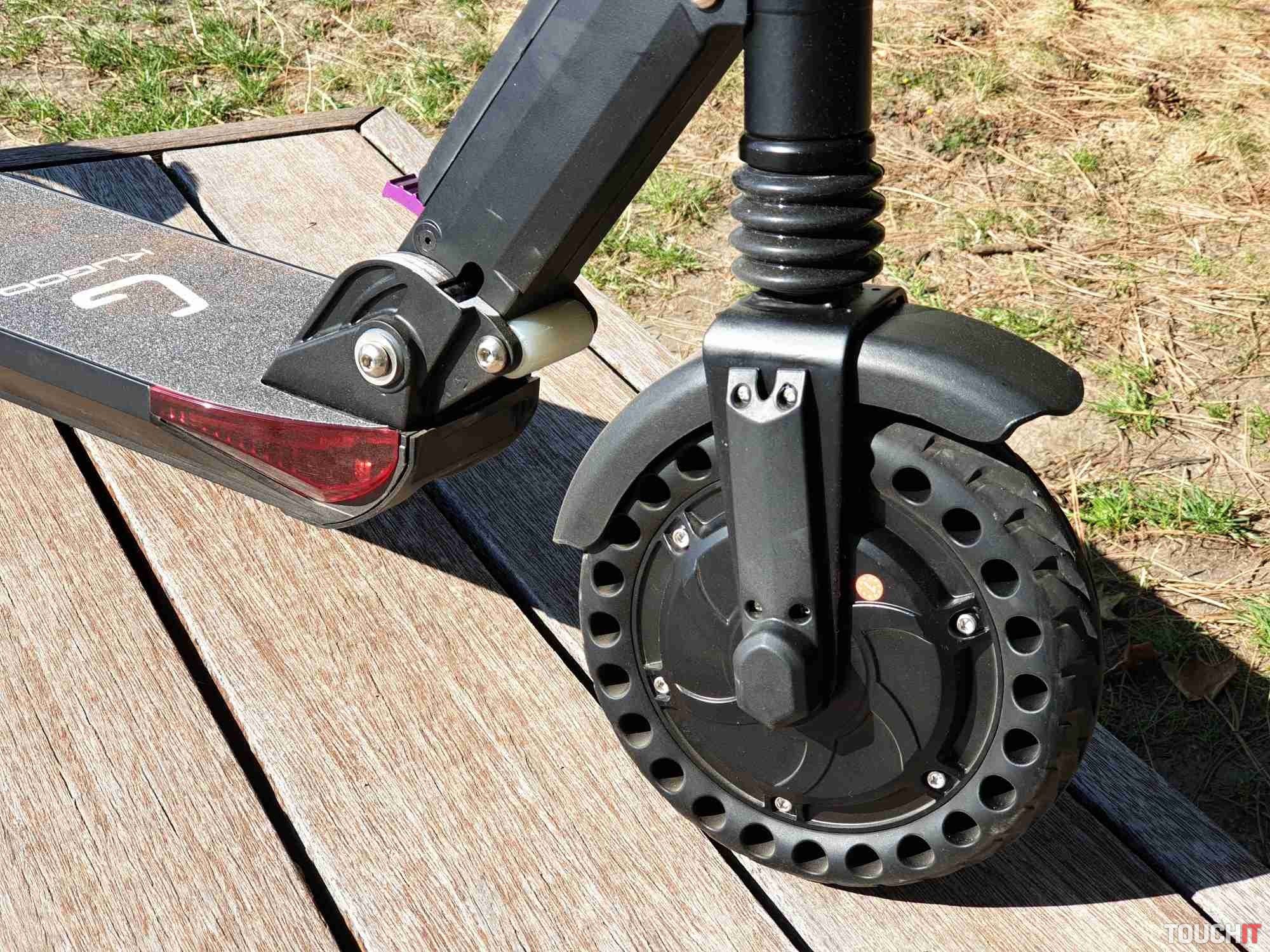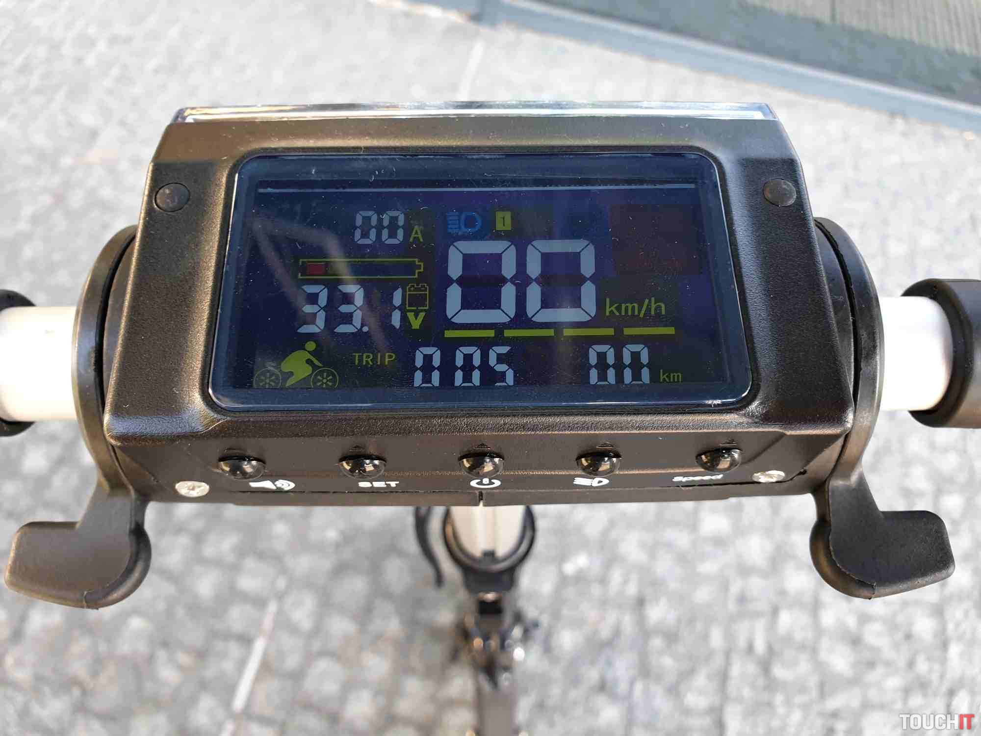 Kolobežka obsahuje veľký displej s počítačom, kde sú farebne zvýraznené jednotlivé informácie. Konkrétne sú zobrazované informácie o rýchlosti, zaradenom stupni výkonu, stave batérie, zapnutí svetiel, či info kontrolku o brzdení. Je tu aj informácia o aktuálnej spotrebe energie a zostatku energie. Pod displejom sa nachádza päť tlačidiel. Konkrétne tlačidlo na zapnutie/ vypnutie, trúba, zapnutie/ vypnutie svetiel, prepínanie a resetovanie informácií o jazde a tlačidlo na prepnutie výkonu. Zadná strana obsahuje predné biele osvetlenie z 24 LED diód. 350 W motor má dosť sily na rozbeh a to na všetkých troch výkonových stupňoch. Každý stupeň ovplyvňuje maximálnu dosiahnutú rýchlosť. Páčka na ovládanie ťahu je na pravej strane a je pomerne citlivá. Maximálnu rýchlosť sme dosiahli 27 km/h s 90 kg záťažou na kolobežku. Kolobežka má aj niečo ako tempomat, ale len na udržanie maximálnej rýchlosti. Na čo si treba zvyknúť je brzdenie. Brzdí sa páčkou na ľavej strane a brzdenie je s veľmi rýchlym nástupom a pomerne veľkou silou. Motor a teda aj elektrické brzdenie je na prednom kolese a prenos sily je hodne citeľný. Chce to hlavne opatrnosť a prax, ale dá sa na to zvyknúť. Ak by nestačilo, tak je k dispozícií aj manuálna brzda na zadnom kolese.Akciovú cenu 290,33 € si môžete ešte znížiť použitím kódu GKB214S, ktorý vložíte do nákupného košíka. Kolobežku objednávajte na tomto odkaze. Výsledná cena po započítaní kódu je 232,26 €.