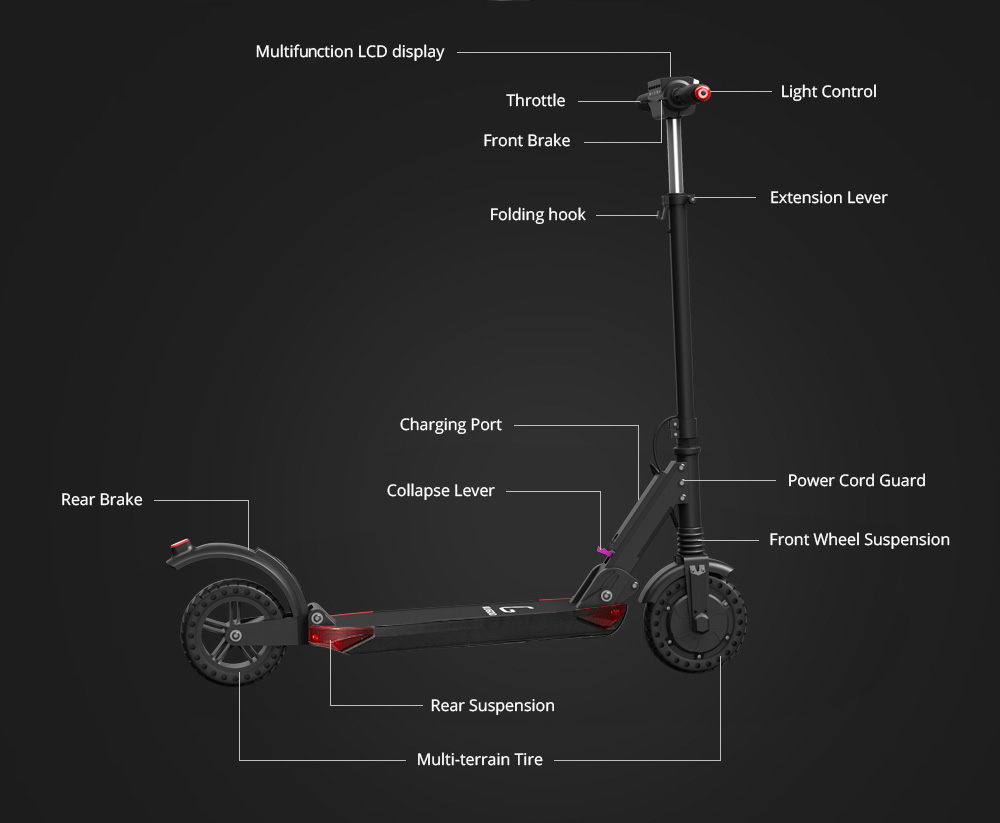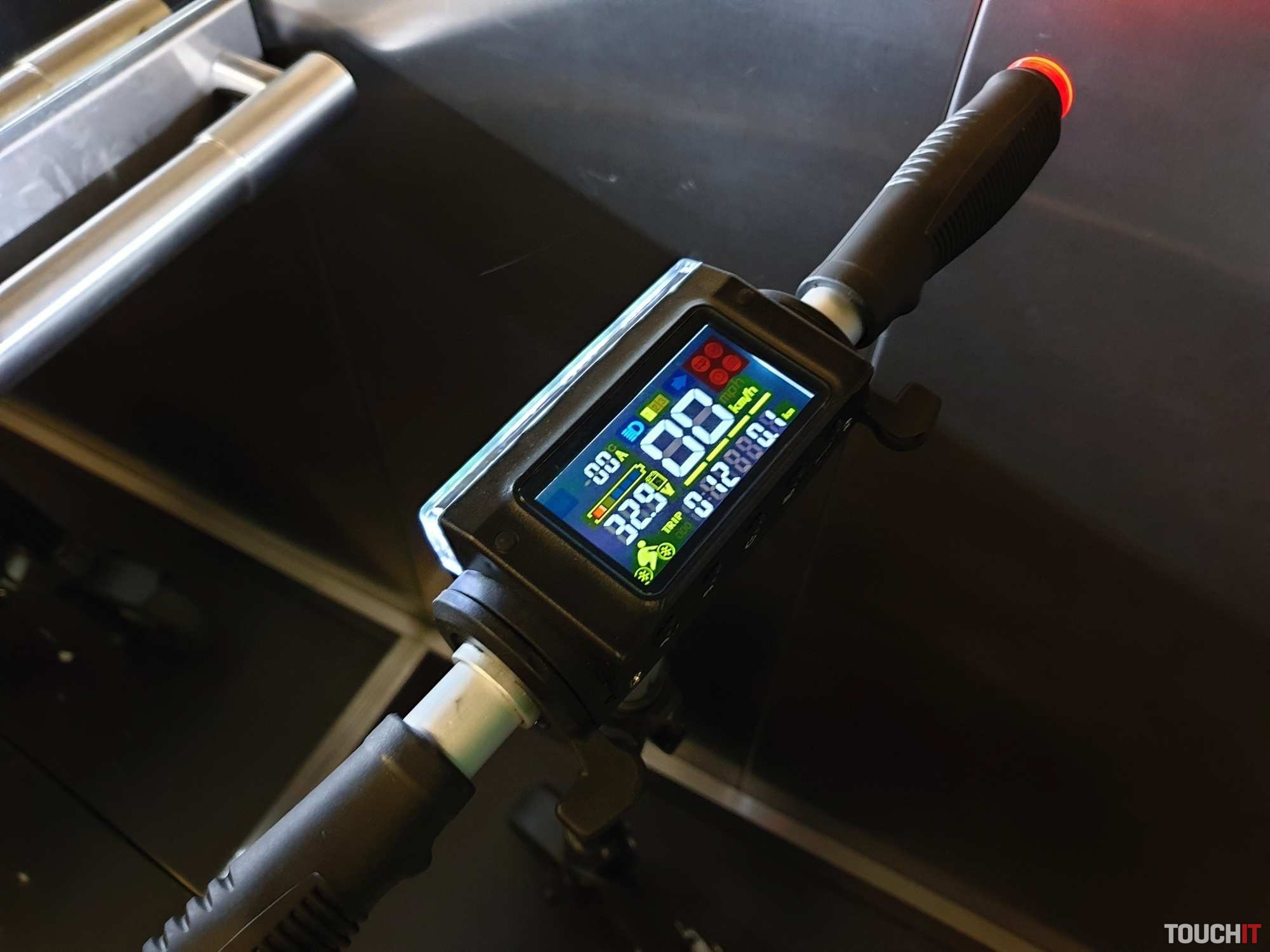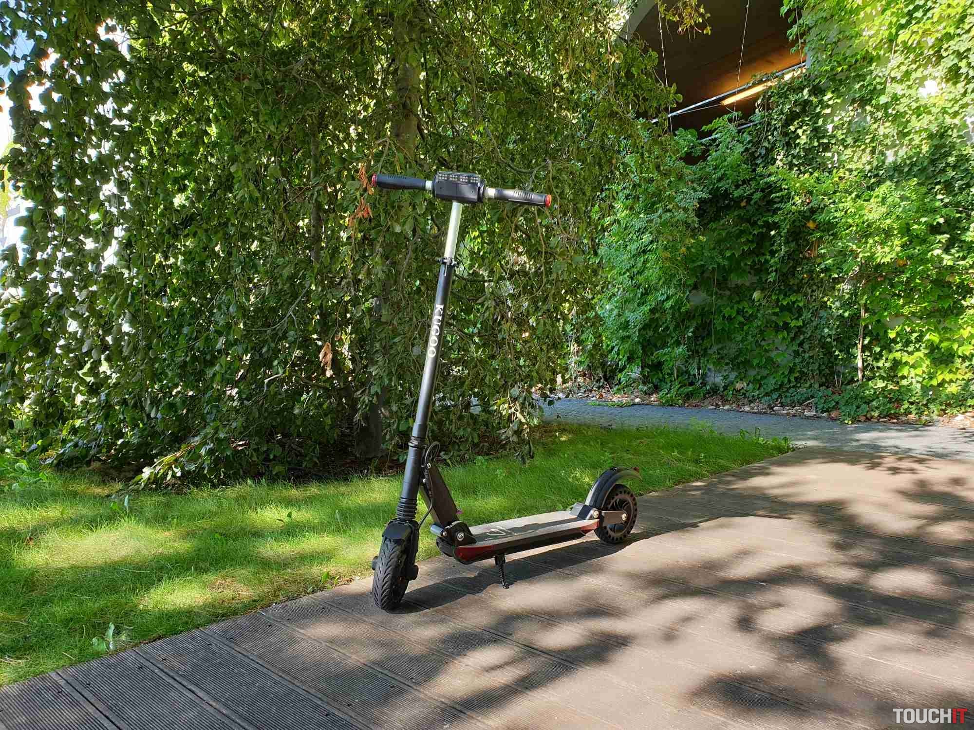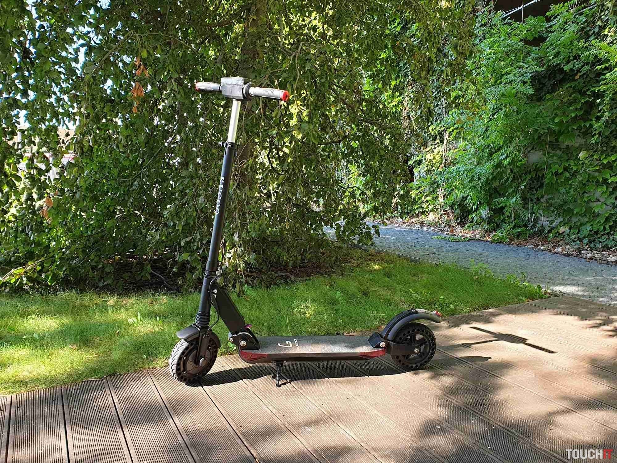 Kolobežka obsahuje veľký displej s počítačom, kde sú farebne zvýraznené jednotlivé informácie. Konkrétne sú zobrazované informácie o rýchlosti, zaradenom stupni výkonu, stave batérie, zapnutí svetiel, či info kontrolku o brzdení. Je tu aj informácia o aktuálnej spotrebe energie a zostatku energie. Pod displejom sa nachádza päť tlačidiel. Konkrétne tlačidlo na zapnutie/ vypnutie, trúba, zapnutie/ vypnutie svetiel, prepínanie a resetovanie informácií o jazde a tlačidlo na prepnutie výkonu. Zadná strana obsahuje predné biele osvetlenie z 24 LED diód. 350 W motor má dosť sily na rozbeh a to na všetkých troch výkonových stupňoch. Každý stupeň ovplyvňuje maximálnu dosiahnutú rýchlosť. Páčka na ovládanie ťahu je na pravej strane a je pomerne citlivá. Maximálnu rýchlosť sme dosiahli 27 km/h s 90 kg záťažou na kolobežku. Kolobežka má aj niečo ako tempomat, ale len na udržanie maximálnej rýchlosti. Na čo si treba zvyknúť je brzdenie. Brzdí sa páčkou na ľavej strane a brzdenie je s veľmi rýchlym nástupom a pomerne veľkou silou. Motor a teda aj elektrické brzdenie je na prednom kolese a prenos sily je hodne citeľný. Chce to hlavne opatrnosť a prax, ale dá sa na to zvyknúť. Ak by nestačilo, tak je k dispozícií aj manuálna brzda na zadnom kolese.Akciovú cenu 290,33 € si môžete ešte znížiť použitím kódu GKB214S, ktorý vložíte do nákupného košíka. Kolobežku objednávajte na tomto odkaze. Výsledná cena po započítaní kódu je 232,26 €.