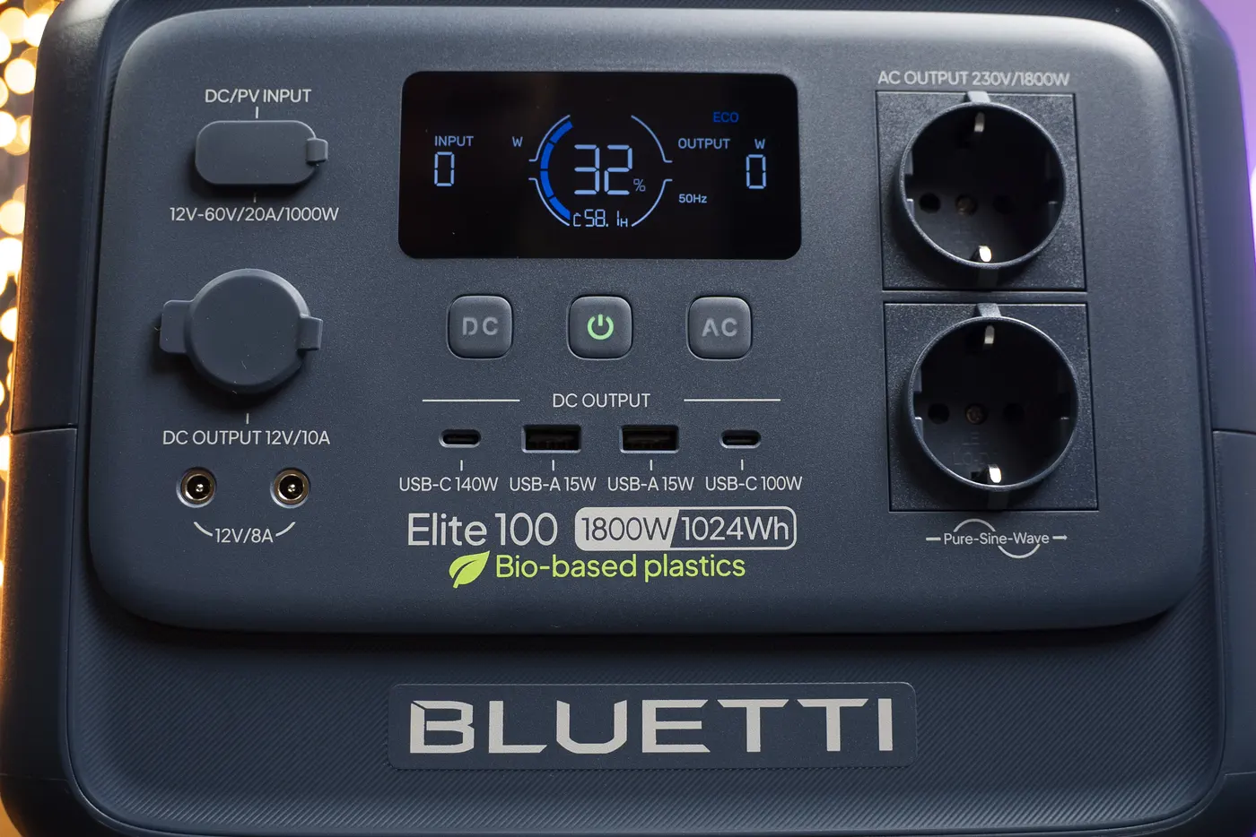 Model Elite 100 V2 v bio verzii (Bio-based) disponuje šasi vyrobeným z bioplastov s certifikátom ISCC PLUS. Táto inovácia znižuje emisie uhlíka pri výrobe až o 25 % oproti štandardnému modelu, čím BLUETTI spája špičkový výkon so zodpovedným prístupom k životnému prostrediu.