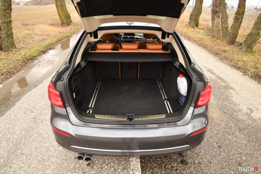 A komfort sedenia? Z pohľadu šoféra nemám žiadne výčitky a spolujazdci sa tiež nesťažovali. Posed je skutočne výborný a zadní pasažieri majú nadštandardne veľa miesta, čo som o „trojke“ nemohol nikdy povedať. Miesto tu je nie len na nohy, resp. kolená, ale aj nad hlavou. Úplne bez problémov som si sadol sám za seba, mám 199 cm, takže to považujem za úspech a prekvapenie zároveň. Nečakal som to! K predným sedadlám treba dodať, že sú elektricky ovládané (šoférove s pamäťou na 2 polohy) a majú príjemné bočné vedenie, ktoré si viete podľa potreby upravovať. Posed je výborný a o pohodlie neprichádzajú ani širšie postavy. Zadní pasažieri sa cítili komfortne a v tomto prípade by si sem sadli (na kratšiu trasu) aj traja dospelí strednej postavy. Napokon nechýba ani zadná lakťová opierka, ISOfix kotviace body, 12V zásuvka a výduch ventilácie. Privítal by som tu ešte nejaké USB-A nabíjacie porty. Podstatný je v tomto prípade aj batožinový priestor, ktorý má „GT výhodu“. To je taká, že sa neotvára iba malá zadná časť, ale kompletný zadok, vrátane skla. Tým získate obrovský nakladací priestor, kde sa dá s nákladom dobre manipulovať. Kufrové dvere sú, samozrejme, elektrické. Základný objem batožinového priestoru je 520 L, čo je slušná hodnota. Prítomná je aj medzi podlaha na plynovej vzpere (chválim!),pod ktorú môžete dať rôzne drobnosti. Rezerva tu nie je. Kufor je prakticky riešený, sú to rôzne kotviace prvky, sieťky a hliníkové koľajnice s posuvnými okami na ukotvenie nákladu. Ak sklopíte zadné operadlá (delenie 40:20:20), jednoduchým potiahnutím páčky z kufra, tak získate objem až 1600 litrov. Skvelé! Rovina to nie je, ale objem je to parádny. Celkovo trpí kufor iba zvažujúcou sa strechou, ale stále ponúka na danú triedu slušnú kapacitu. Adaptívne LED svetlomety K danej výbave prislúchajú aj adaptívne LED svetlomety s tradičným denným svietením. Predné svetlomety pracujú ukážkovo, majú dostatočný dosah, výbornú svietivosť a slušne tieňujú aj iné vozidlá v premávke. Samozrejmosťou je automatické prepínanie režimu diaľkové/tlmené, ako aj dynamické natáčanie do zákrut. Ak jazdíte veľa večer a v noci, tieto svetlá oceníte. LED technológiou disponujú aj koncové svetlá s krásnym svetelným podpisom, ako aj zostatok svetelnej techniky. Motor, prevodovka a pohon všetkých kolies xDrive Testovaný model poháňa 2-litrový 4-valec prepĺňaný dvomi turbami s výkonom 185 kW (252 ps) a max. krútiacim momentom 350 Nm. Tento výkonný agregát je spriahnutý s 8-stupňovou športovou automatickou prevodovkou StepTronic, ktorá si už tradične odvádza svoju robotu na jednotku, bez akýchkoľvek výhrad. Benzínový agregát je perfektný, ale nečakajte, že to je „trhač asfaltu“. Výkon je relatívne vysoký, ale pocitovo sa to nezdá. Je to však ideálna a multifunkčná motorizácia. Vhodná do mesta, ale ešte atraktívnejšia mimo neho. Na diaľnici sa cíti ako doma, ale ani prepletanie sa ostrými zákrutami vo vysokých otáčkach jej nevadí. Práve naopak, prospieva jej to – aj šoférovi :). Skutočne výborná dvojica!