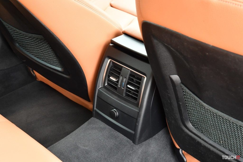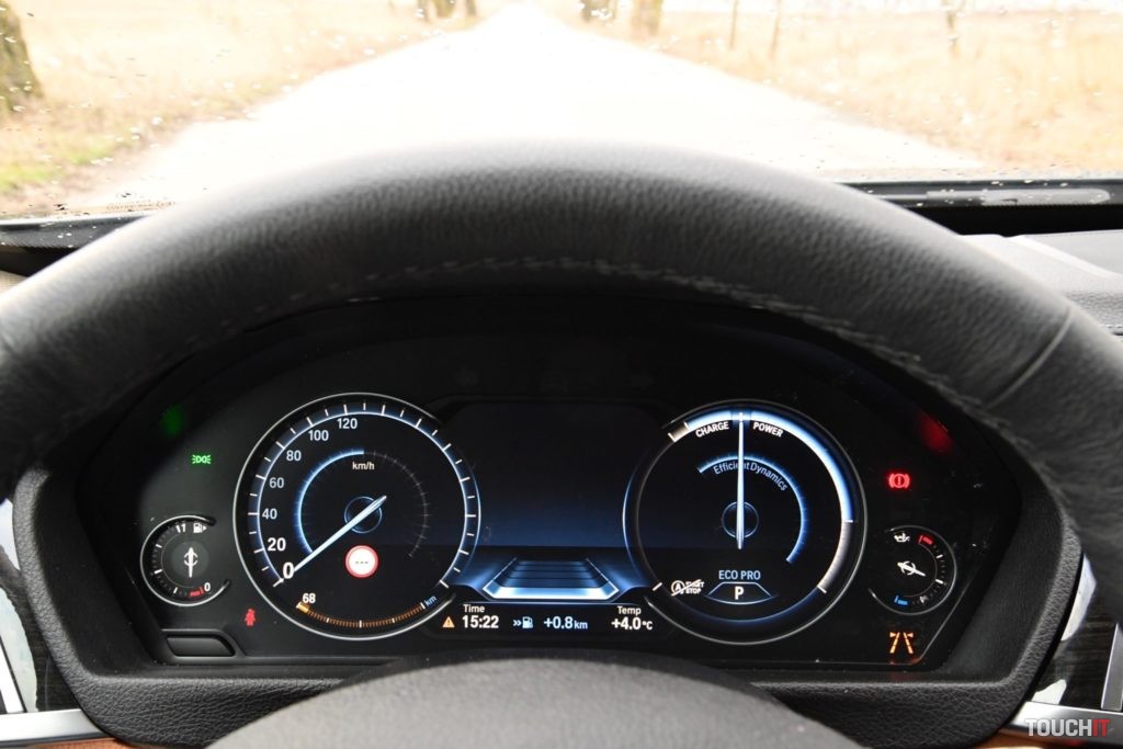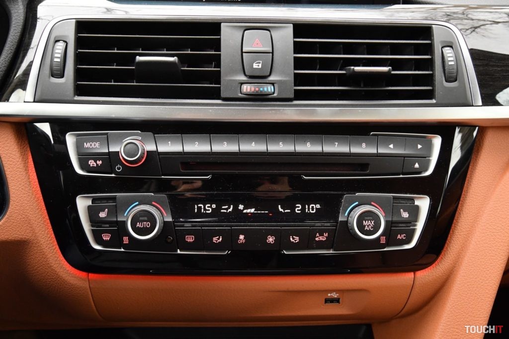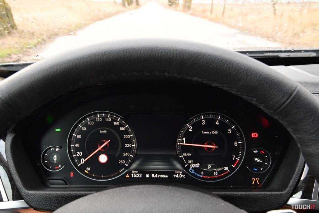 Oči nechávam aj na oknách, ktoré sú delené čierno lakovaným stĺpikom a všetky tri pôsobia ako celok s chrómovým rámom, nádhera! Okná sú bezrámové a zadné v tomto prípade aj zatmavené. Všetky línie a prelisi korešpondujú s dizajnovým jazykom automobilky. Nejde o nič extrémne, ale o vyvážené a funkčné spracovanie. Vyvýšený zadok je pekne tvarovaný a dopĺňajú ho efektné koncové LED svetlomety. Nechýba ani decentná chrómová lišta v strede nárazníku a dvojitá koncovka výfukového systému. Elegantný dizajn dopĺňajú aj slušné 18“ disky. V tejto konfigurácii sú na leto určené 19“ disky so zmiešanými pneumatikami. Osobne si tu viem predstaviť aj krásne 20“ disky – prijímam aj znížený komfort :). Čo dodať? Len toľko, že ide o kus pekného auta. Interiér Po otvorení štýlových bezrámových dverí vás pohltí krásne a do detailu spracovaný interiér, ktorý je kombináciou viacerých materiálov. V prvom rade sú to športové sedadlá v krásnej hnedej koži, ktorá sa dostala aj na výplne dverí. Spodok palubnej dosky je tiež hnedý, ale je to iba mäkčený plast, nie koža. Nechýbajú ani decentné hliníkové lišty a dekory, ktoré dopĺňajú ovládače a veľké drevené lišty na palubnej doske a v stredovom tunely. Elegantná kombinácia! Vrch palubnej dosky je mäkčený plast, tváriaci sa ako koža. Interiér ako celok je klasické BMW – v dobrom slova zmysle. Ovládacie prvky a podstatné súčasti sú orientované na vodiča, ktorý má všetko na dosah a nechýba ani objemný stredový tunel. Ovládanie je naozaj intuitívne, vrátane informačno-multimediálneho systému iDrive. BMW produkuje výborné volanty, ale tento mi z nich sedí najmenej – po stránke dizajnu. Do rúk sadne celkom dobre, je kožený a multifunkčný, ale nevyzerá príťažlivo. Chcelo by to príplatkový M volant!
