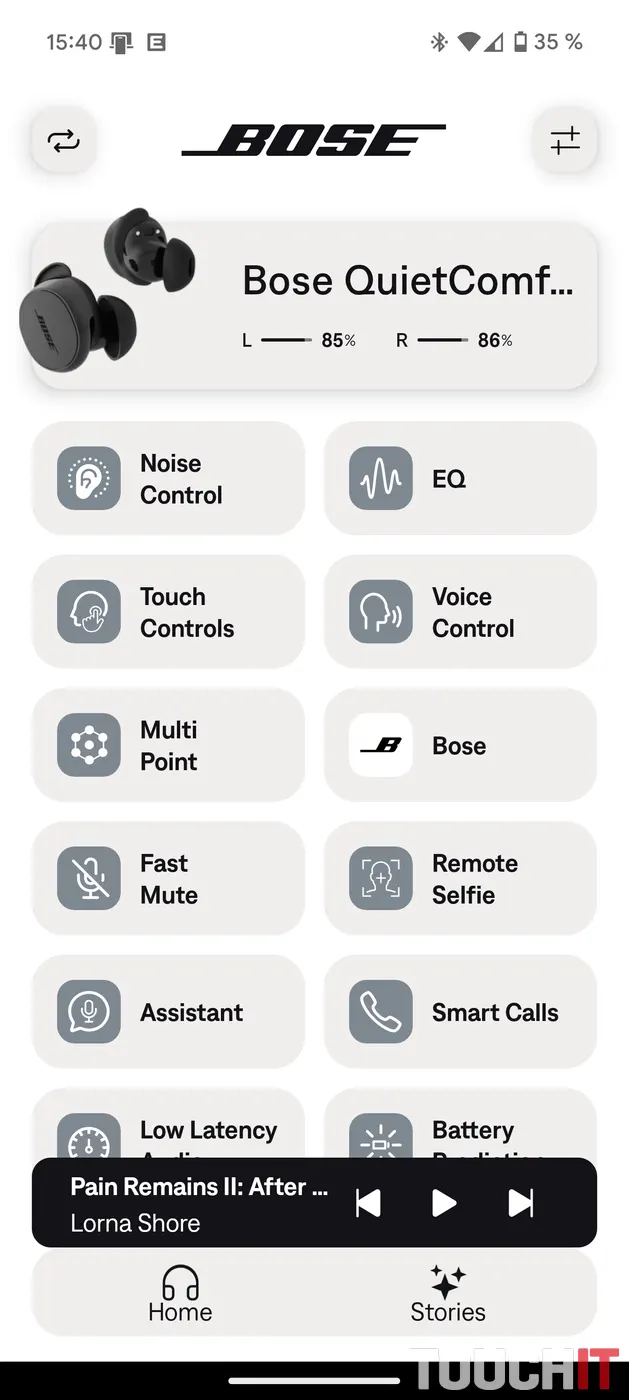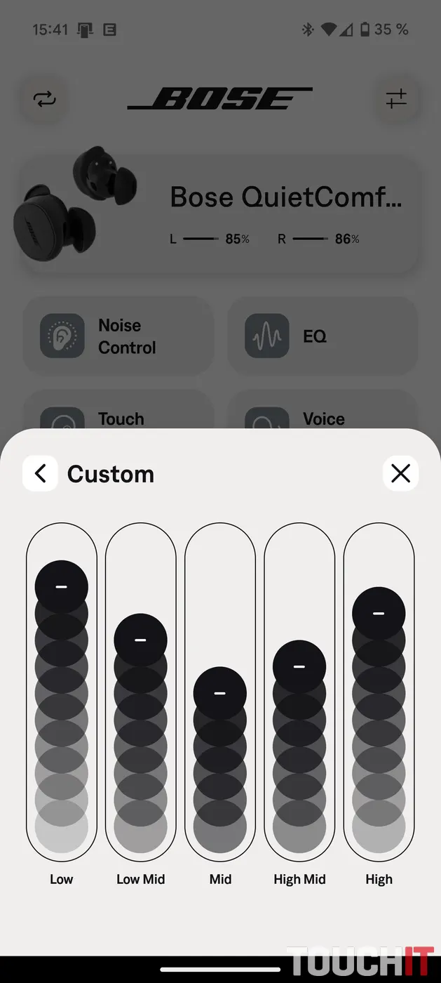 Pri kvalitných slúchadlách s množstvom funkcií sa nezaobídete bez mobilnej aplikácie. V prípade Bose ide o aplikáciu Bose QCE, ktorá je navrhnutá špeciálne pre slúchadlá QuietComfort. Jej súčasťou sú rôzne možnosti nastavenia nielen zvuku, ale aj ovládacích prvkov od ovládania ANC, nastavenia ekvalizéra, nastavenia dotyku alebo napríklad aj zistenie, ako dlho vám vydržia slúchadlá hrať.