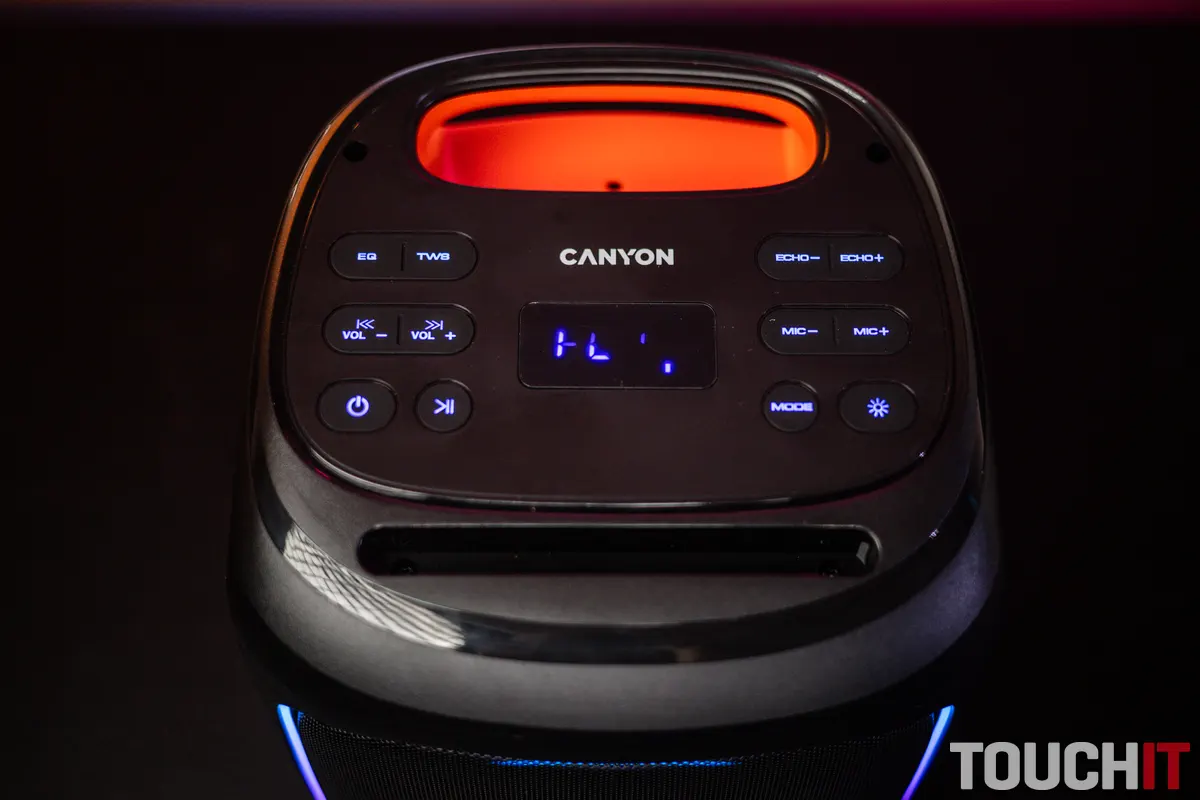Reproduktor Canyon OnFun 5 sa ovláda tlačidlami, ktoré sa nachádzajú v hornej časti reproduktora. Tlačidlá sa dajú jednoducho stláčať a ovládanie je intuitívne. Dokážete nimi reproduktor vypnúť a zapnúť, meniť hlasitosť prehrávania, zmeniť režim pripojenia k zariadeniu, nastaviť ekvalizér a mnoho ďalšieho. V strede tiež nájdete displej, ktorý napomáha jednoduchému ovládaniu reproduktora.