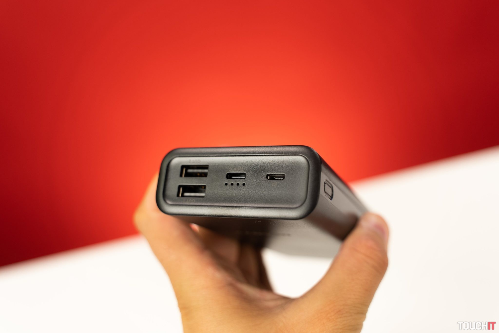 Najmenšia z nášho prehľadu a podporuje nabíjanie cez USB-C aj Lightning, nabíjanie iných zariadení je cez USB-C alebo USB-A. Maximálny výkon nabíjania je Quick Charge 3.0 a Power Delivery na úrovni 18 W (aj na nabíjanie powerbanky).