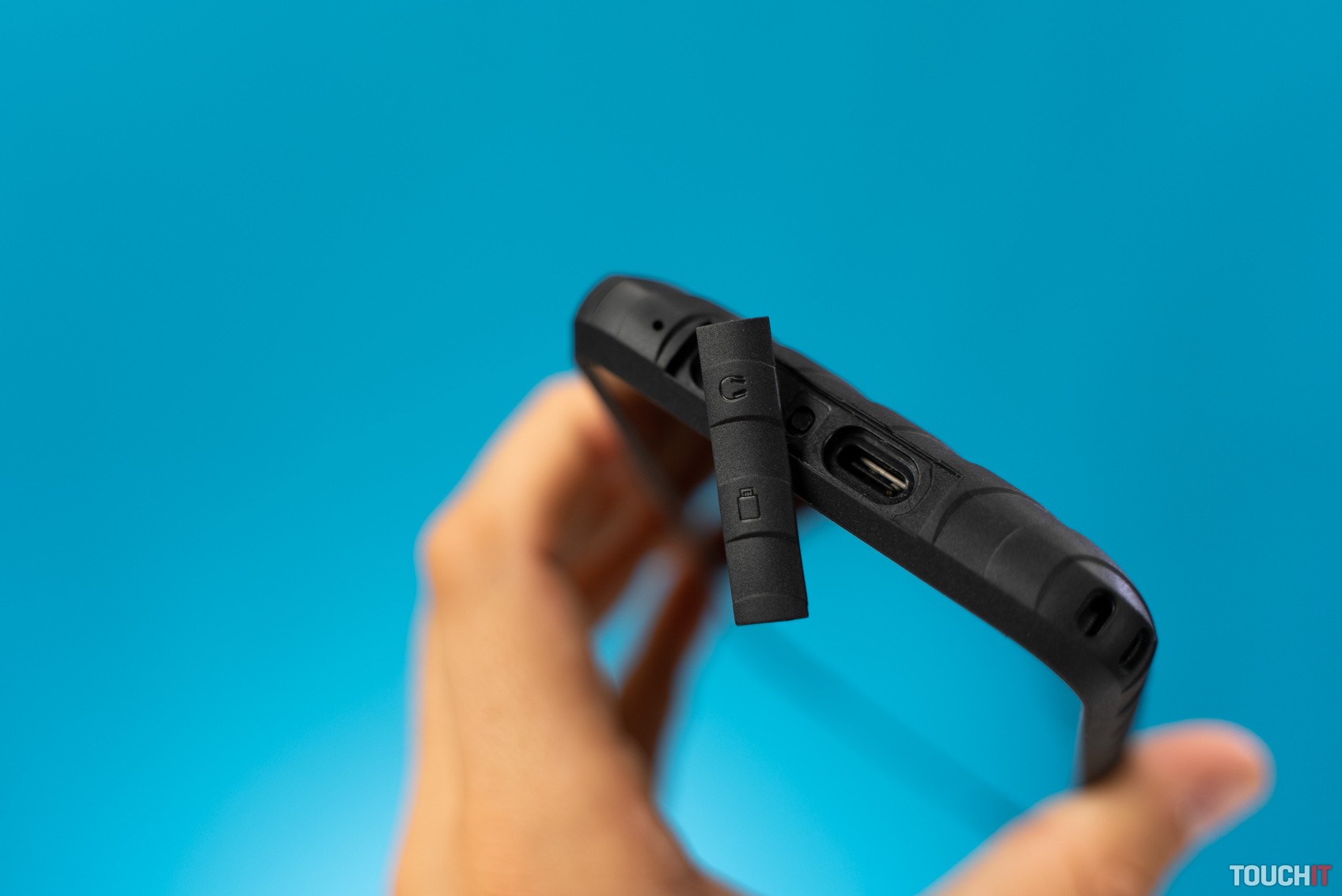 Spodné konektory, USB-C a 3,5 mm audio, sú chránené krytom, rovnako aj prístup k SIM karte na boku telefónu. Netreba k tomu žiadny nástroj, stačia nechty alebo nožík, slot potom vyberiete ľahko. Kryty sú tu kvôli zvýšenej odolnosti IP69K. Toto je ešte vyššia odolnosť ako bežne IP68 v drahších telefónoch. Rozdiel je v tom, že tu ide o prachotesné spracovanie a vodoodolné proti vysokému tlaku vody a tiež vodne pare do teploty 80 °C.