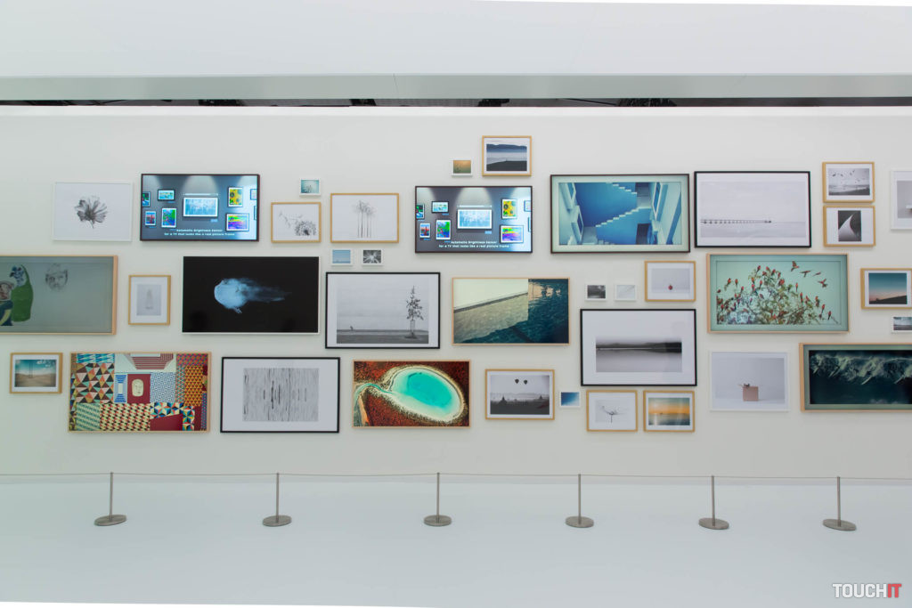 Úplnou novinkou sú totiž televízory, ktoré vyzerajú ako obraz. Presnejšie povedané, boli sme v galérii, kde medzi obrazmi bolo umiestnených 6 televízorov s uhlopriečkou 55-palcov a na prvý pohľad sa nedalo určiť, čo je klasický obraz a čo je televízor.