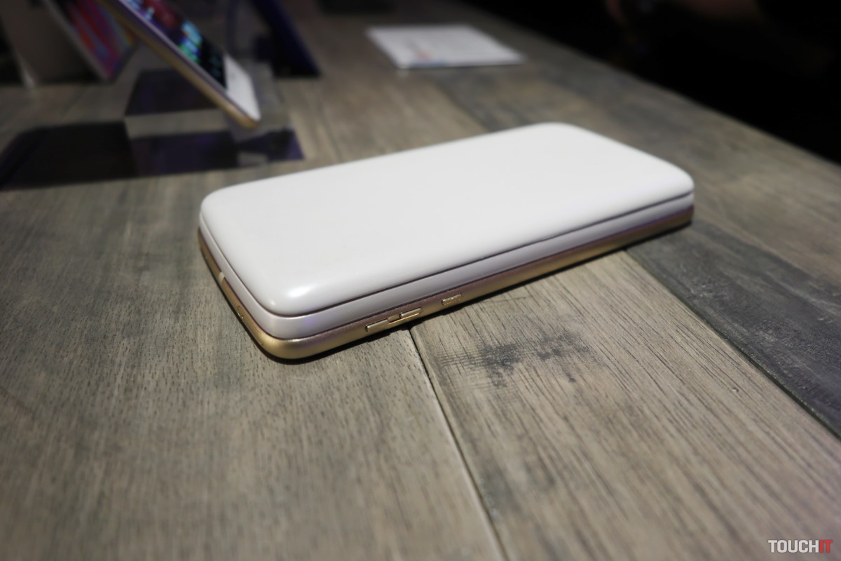 Klávesnica sa dá používať v dvoch pozíciách a je o niečo hrubšia ako samotný telefón