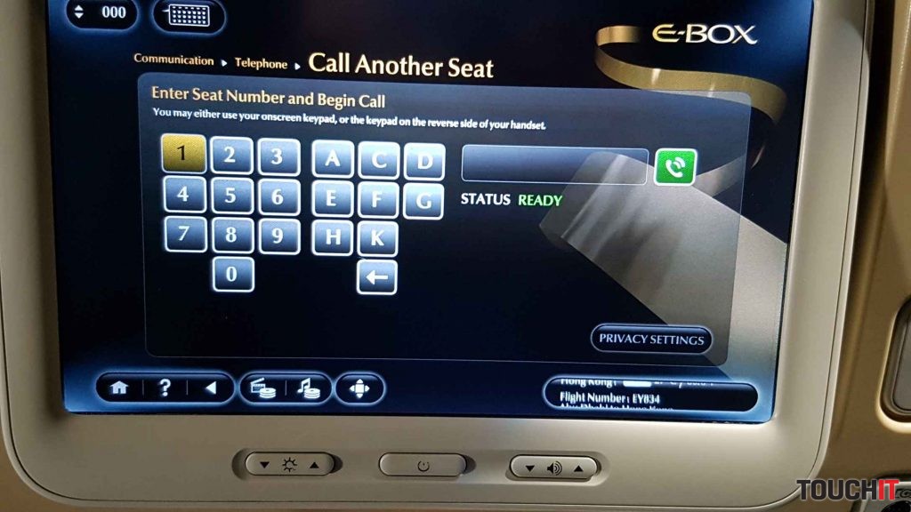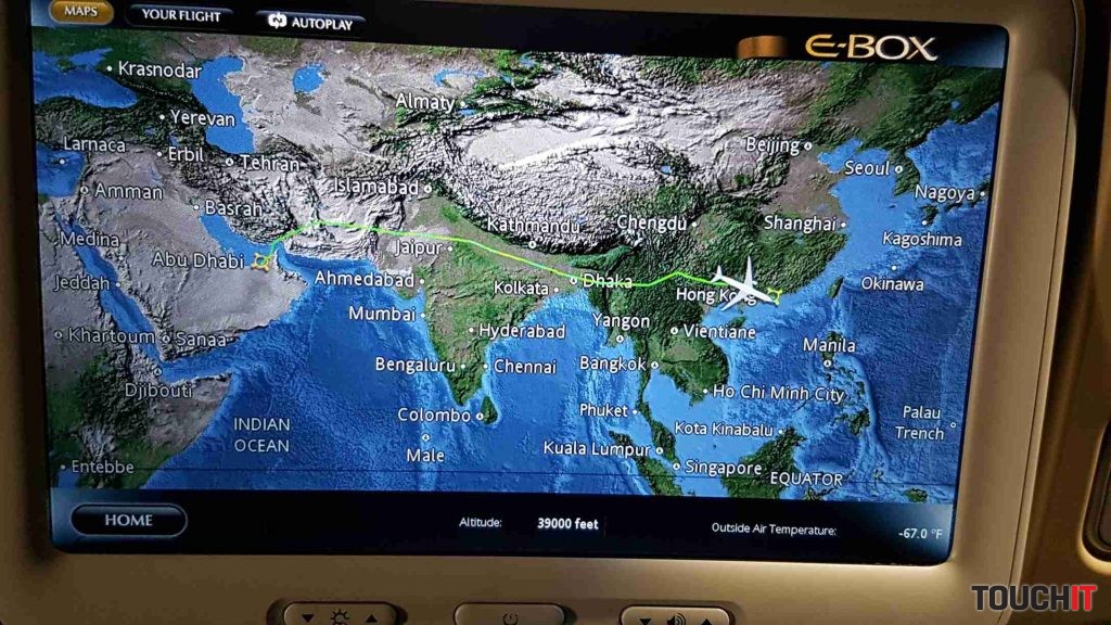 Odbavenie na letisku prebiehalo bez problémov. Síce tam bola v sobotu ráno poriadna plnka, ale dopravca Etihad mal úplne prázdno. Už viem ako sa cítia cestujúci v biznis triede. Prvý let bol do Abu Dhabí a bol výborný. Celú trojsedačku som mal len pre seba a ešte aj dostatok priestoru na nohy. To už bolo veľmi podozrivé a potvrdilo sa mi to pri druhom lete. Airbus A330-200, ktorý má dve uličky so sedadlami 2-4-2 bol úplne plný. Nechápem, kam všetci v sobotu cestujú. 🙂 No a nielen že som nemal pre seba celú štvorsedačku, ale aj na nohy bolo o trochu menej miesta. A to po piatich hodinách letu, dvoch čakaniach na prestup a ďalších 6,5 hodinách cítite. Zábavný systém sa mi páčil, ale opäť – nosím si vlastný obsah. Inak výborná bola možnosť zaplatiť si telefonovanie na pevninu, internet alebo možnosť posielať SMS či emaily. Toto sa mi už páčilo viac, aj keď som to nevyužil. Vidím v tom ale väčší zmysel, hoci pri tak dlhom lete by sa dal pozrieť aj nejaký film. A dobrá správa, ak poletíte Etihadom, nemusíte príliš dbať na to, aby ste sedeli spolu. Zadarmo si môžete volať cez telefón alebo chatovať. Stačí vedieť číslo sedadla spolucestujúceho.