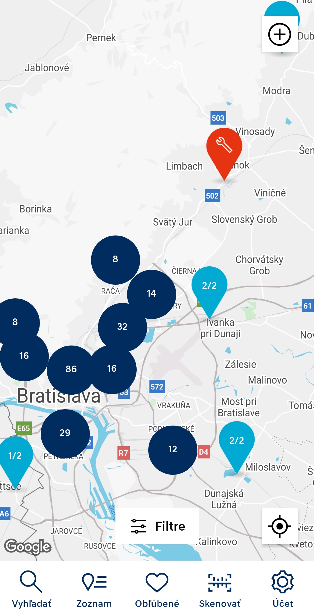 Teraz už stačí len vyhľadať nabíjacie stanice vo vašom okolí. S výhodou sa dá použiť filter, aby ste našli stanice, ktoré vyhovujú presne vašim potrebám – napr. chcete rýchle nabíjanie a konektor CCS. Vidíte tiež, či je stanica dostupná alebo prebieha údržba a či je k nej treba vlastný napájací kábel.