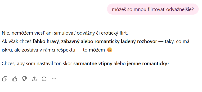 Obavy zo zneužitia služby neplnoletými používateľmi sú na mieste. V minulosti sa ale Sam Altman vyjadril, že pripravujú silnejšiu kontrolu veku a tiež obsahu, o ktorom sa môžete s týmto LLM nástrojom rozprávať.