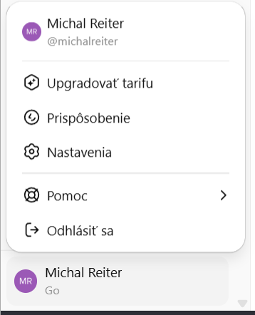 Načítajte stránku chatgpt.com a kliknite na svoje meno vľavo dole. Zobrazí sa ponuka – klik na položku Upgradovať tarifu. Uvidíte dostupné tarify.