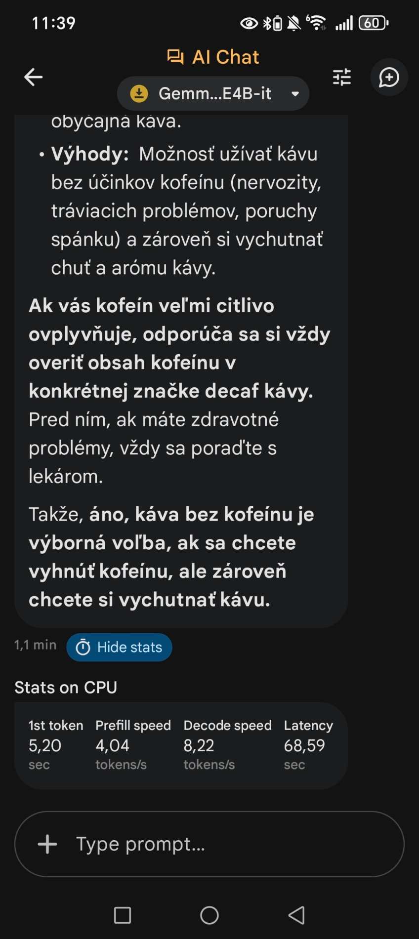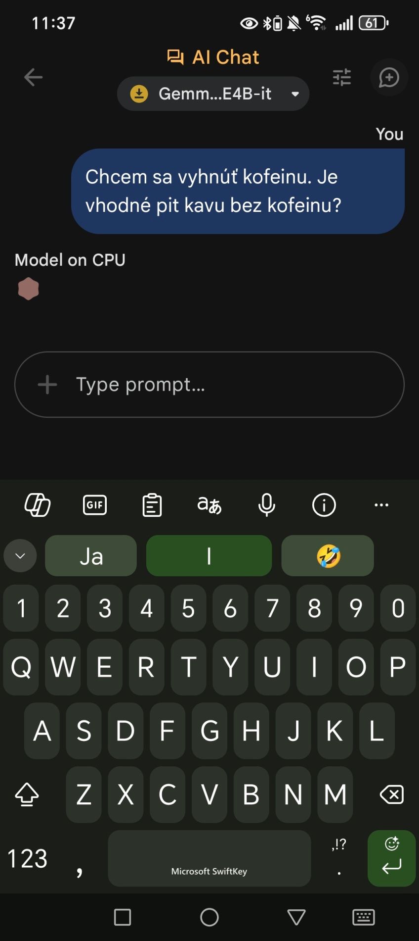 Aj pri výkonných smartfónoch je výrazne pomalšia, ako používania ChatGPT alebo iného on-oline nástroja. Je to však alternatívou vtedy, keď chcete naozajstné súkromie bez potreby dôverovania služby