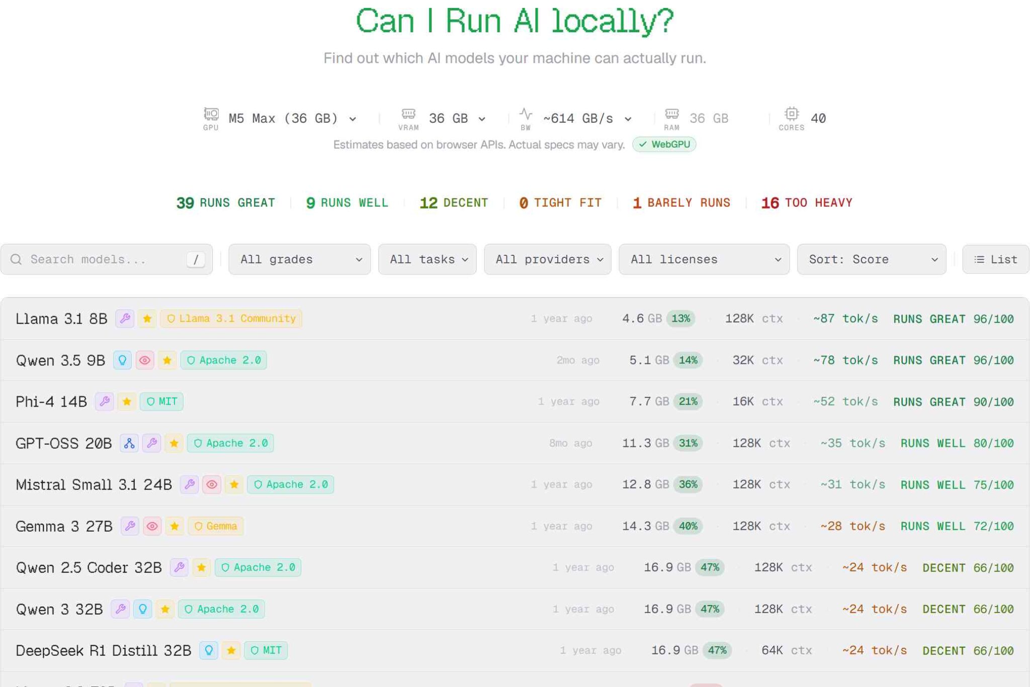 Výber správneho modelu nie je jednoduchý a bežne zohľadňujete dva faktory a to komplexnosť modelu vs. jeho rýchlosť. Služba CanIRun.ai vám ukáže, aké AI modely zvládne vaše zariadenie.