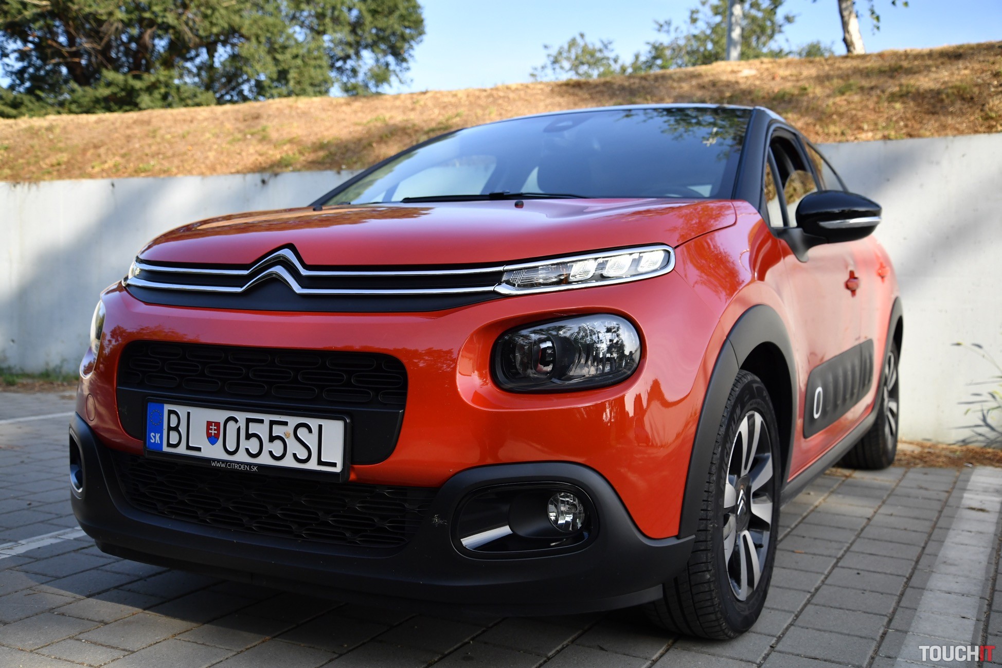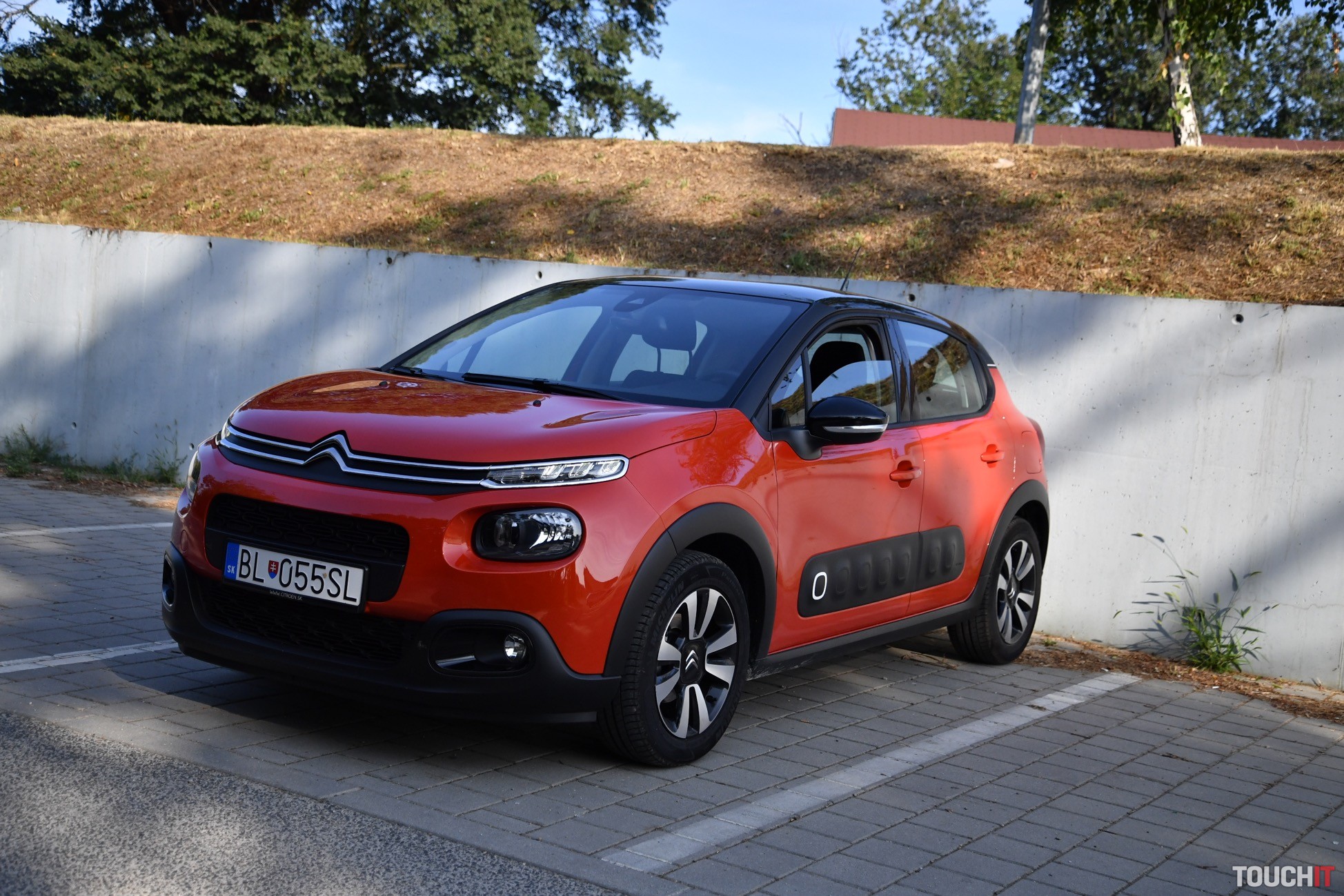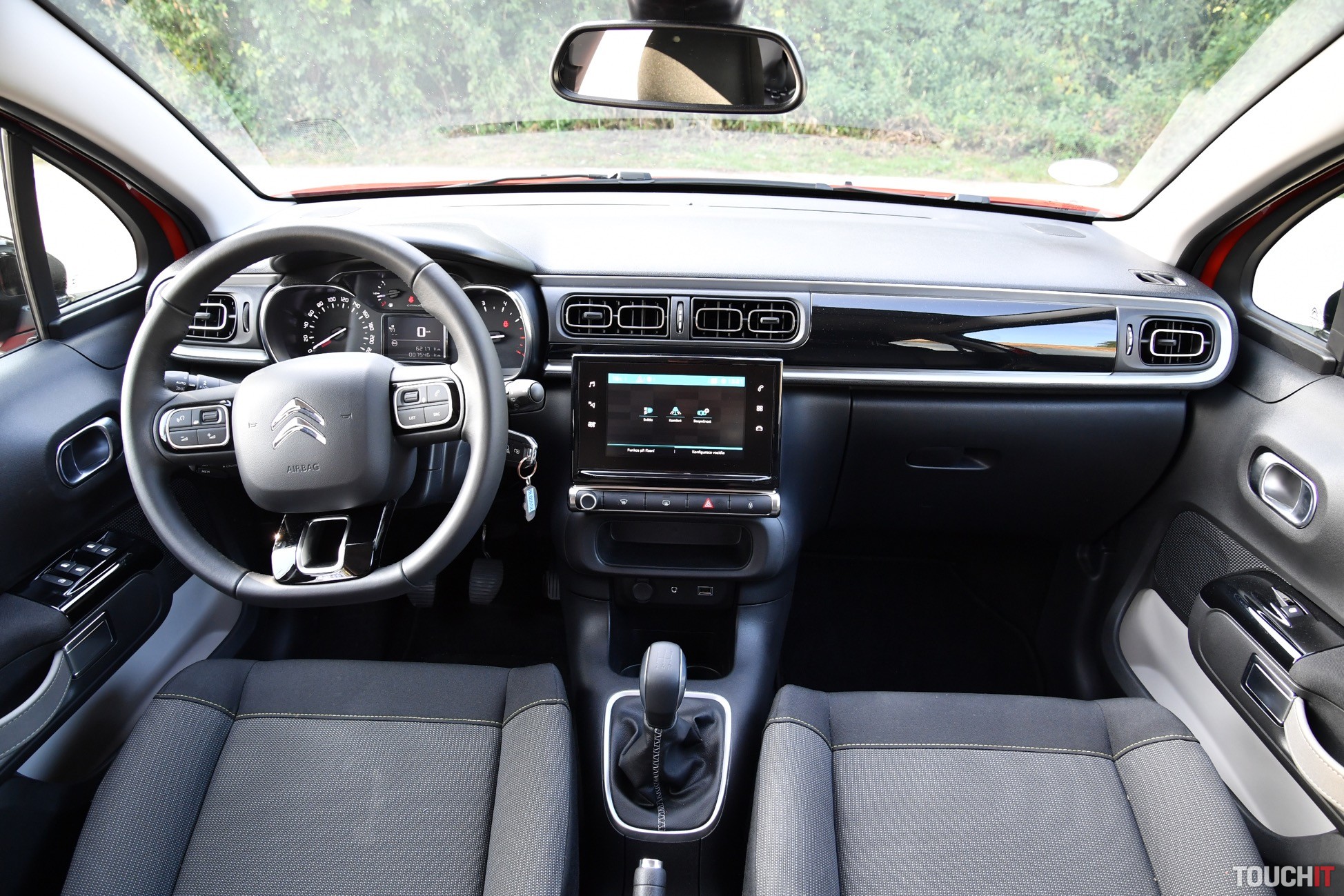 A to ešte nie je všetko! To, čo dáva Citroënu ten správny a jedinečný „look“ je kaskádovitý predok a zadná časť so svetlami s 3D efektom. Predok je výrazne členitý, pričom všetko začína maskou s chrómovými lištami, ktoré sú zároveň aj logom, ako aj lemom okolo denných LED svetiel. Viac LED svetiel tu nehľadajte, nie sú tu, čo je trošku škoda. Pod denným svietením je hlavný svetlomet a úplne dole sú hmlové svetlomety. Tento predok si s inou značkou určite nepomýlite. Ešte dodám, že zostatok svetelnej techniky pozostáva z klasických halogénových žiaroviek. Zadná časť nie je tak extravagantná, ale svetlomety s 3D efektom si určite všimnete. Je to takto, buď sa vám C3 páči alebo nie, to je jednoduchá matematika :). Poďme dnu, tu budete tráviť najviac času. Interiér je jednoduchý, ale celkom pekne spracovaný. Použité materiály síce nepatria medzi tie najlepšie, ale dá sa na to zvyknúť. Predné sedadlá majú špecifický hranatý tvar, na ktorý som si musel chvíľu zvykať (už počas testu C3 AirCross, recenziu nájdete > TU), ale pohodlie ponúkajú dostatočné. Sú to také fajn kreslá s vyhrievaním, ktoré si nastavíte podľa potreby, ale možno to nebude úplne podľa predstáv, teda nie vtedy, ak máte 2 metre. Ale taký človek si C3 nekúpi, predpokladám. Osobne mi veľmi chýbala lakťová opierka, ktorá nie je v každom malom aute povinnosťou, ale tu mi k celkovému pohodliu chýbala – najmä počas dlhších jázd. Stred je prázdny a okrem ručnej brzdy a držiaka na nápoje (už pre zadných pasažierov) tu nie je nič. Palubná doska má neutrálne rozloženie prvkov, ale nič extra mi na nej neprekážalo. Všetko je na dohľad a dosah. Zdobí ju iba jedna mohutná lišta s klavírnym lakom a špecifické výduchy ventilácie. V strede palubovky je 7“ dotykový LCD displej a pod ním 2 priehradky na drobnosti a poháre. Veľké telefóny tu budú mať problém! Šofér má k dispozícii nastaviteľný multifunkčný volant a určite vás zaujmú aj efektné madlá dverí. Tie sú viac zaujímavé ako praktické. Zostatok interiéru pozostáva z tvrdých plastov, ale občas nájdete aj mäkčenú časť, napr. opierku na lakeť vo výplni dverí. Teraz sa pozrime dozadu. Ako predné, tak aj zadné sedadlá sú látkové a celkom pohodlné. Opäť ide o také fajn kresielka. Pre 3 dospelých tu miesto nie je, ale dvaja alebo tri deti tu problém mať nebudú. Na stredovú opierku a výduch ventilácie však zabudnite, sú tu iba ISOfix kotviace body. Operadlá sa dajú sklopiť a delenie majú v pomere 60:40. Týmto sa presunieme rovno do batožinového priestoru, ktorý nie je veľký, ale moju aktuálnu disciplínu zvládol na výbornú. To znamená, že som doňho upratal objemný kočík, nákup a počas víkendu aj batožinu pre 4 osoby (z toho 2 deti). Myslím, že to je dobré, ale teraz čísla. Základný objem je 300 l, po sklopení zadných operadiel to je až 922 litrov. Úplná rovina nevznikne, ale objemné predmety preveziete jednoduchšie. Výhodou je aj to, že v medzipodlahe je rezervné koleso. Motor, prevodovka a jazdné vlastnosti Testovanú C3 poháňa jednoduchý benzínový 3-valec s výkonom 60 kW (82 PS) a max. krútiacim momentom 118 Nm. Motor pracuje v súčinnosti s 5-stupňovou manuálnou prevodovkou. Určite vám je jasné, že toto nie je žiadny pretekár ani žihadlo. Je to kľudné mestské auto, s ktorým sa dobre jazdí a ani do budúcna by ste s týmto motorom nemali mať problémy. Na aktuálny štandard je poddimenzovaný, ale z dlhodobého hľadiska to má svoje výhody. Výkonu je však dosť na to, aby ste vybehli z mesta na diaľnicu alebo akúkoľvek dlhšiu cestu. Ak to je potrebné, tak aj tento motor sa vie nadýchnuť a niečo ukázať. Baviť vás bude určite aj spotreba (mňa bavila extrémne). Tá je výborná! Od začiatku testu som sa nedokázal dostať cez 6,5 L/100km, čo bol môj strop. A verte, neboli to žiadne letargické jazdy, ale svižné presúvanie sa nie len po meste, ale aj diaľniciach. Bežne sa spotreba pohybuje výrazne pod 6l/100km, čo je veľmi pekné číslo. Čo sa týka podvozku, tak ten je príjemný, relatívne dobre sa mu darí filtrovať nerovnosti a buchot počuť iba zriedka. Je prijateľne mäkký, čo počas dennodenného presúvania sa oceníte. Komfort sa odvíja aj od obutia, ktoré bolo vyvážené. Efektné 16“disky (MATRIX) vyzerajú dobre, ale stále majú na sebe dostatok gumy, ktorá tlmí nárazy (pneumatiky 205/55/R16). V danej triede je správanie sa podvozku vcelku uspokojivé, čo je podstatou. Technológie a asistenčné systémy Základom multimediálno-informačného systému (RCCA2) je 7“ dotykový LCD displej, pomocou ktorého sa ovládajú a nastavujú všetky funkcie, vrátane asistenčných systémov. Po jeho bokoch sú dotykové tlačidlá, ktoré slúžia na rýchly prístup k dôležitým funkciám. Medzi nich určite patrí 1-zónová automatická klimatizácia, ktorá sa ovláda výhradne cez tento displej. Nemenej podstatným prvkom je natívna navigácia, ktorá funguje veľmi dobre. Samozrejmosťou je možnosť prepojiť multimediálny systém so smartfónom pomocou Bluetooth konektivity alebo USB káblom. Ak to bude kábel, tak môžete využiť aj skvelé aplikácie – Apple Car Play a Android Auto. Zo smartfónu sa dá do systému zdieľať aj internet a vytvoriť tak v aute HotSpot. Ešte dodám, že centrálnemu LCD displeju sekunduje združený prístrojový panel pred šoférom. Na malom displeji vidíte podstatné údaje o jazde, spotrebe a pod. K zvýšenému komfortu dopomáha aj multifunkčný volant s ovládaním multimédií, 4 elektrické okná s automatickým doťahovaním, ako aj počúvateľný audio systém so 6 reproduktormi. Z bežnej (drôtovej) konektivity je k dispozícii 1 USB-A port, 3,5 mm audio konektor a 12V zásuvka. Asistenčných systémov