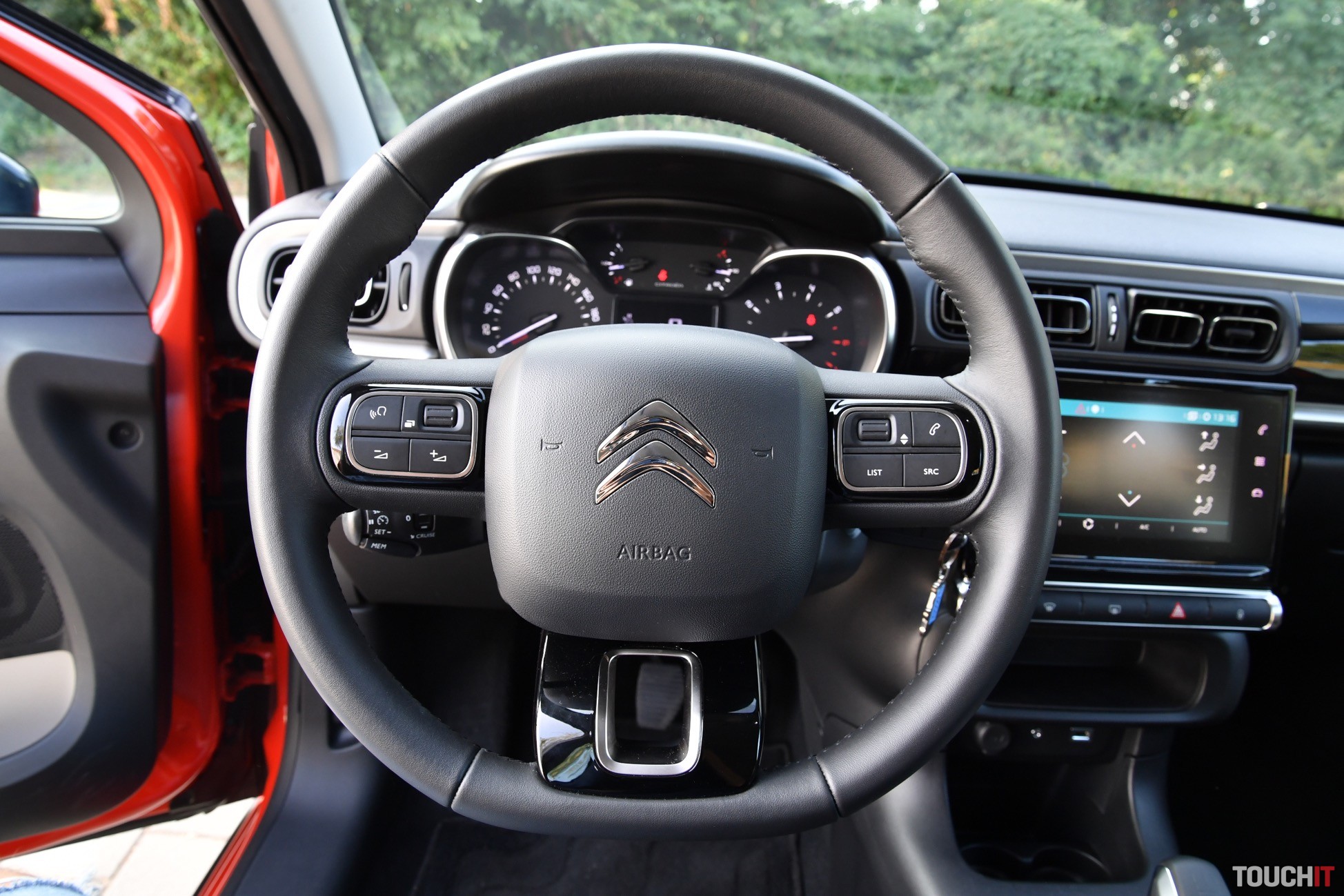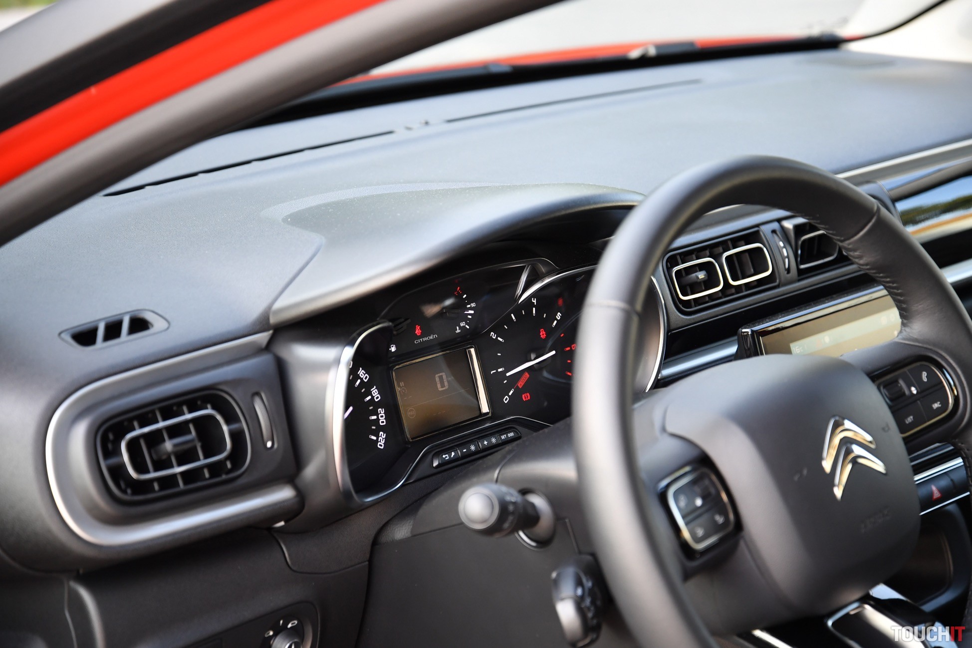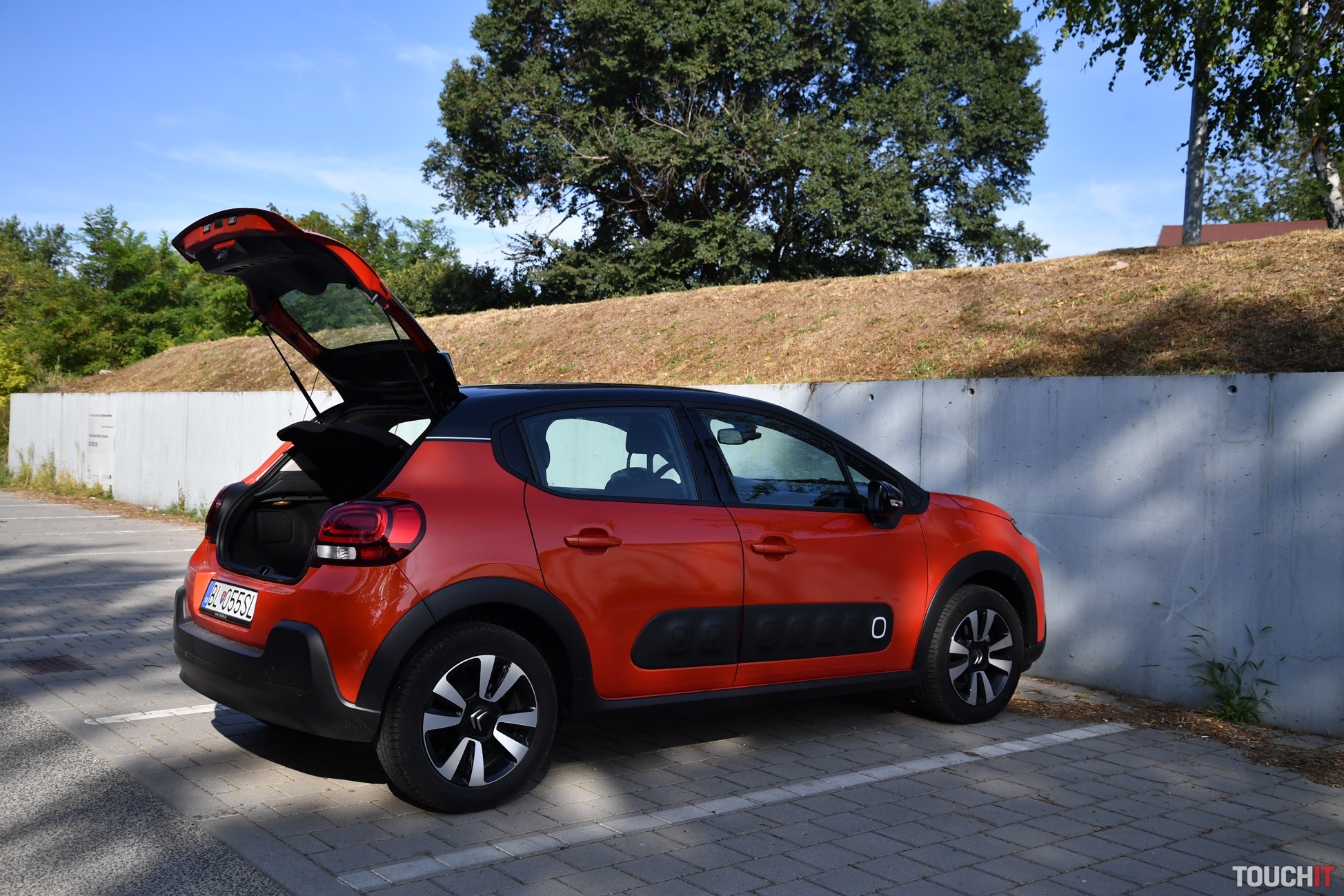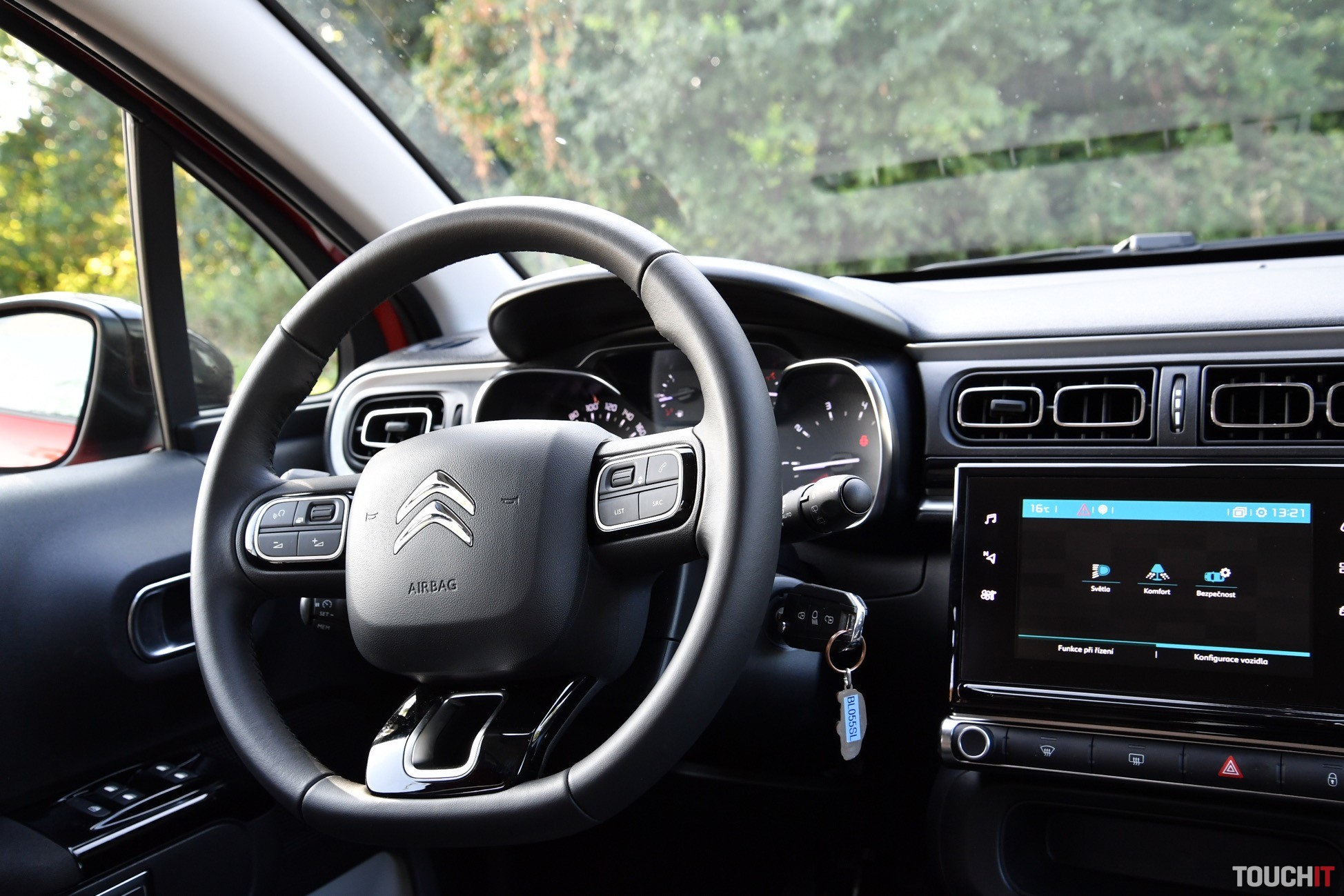 A to ešte nie je všetko! To, čo dáva Citroënu ten správny a jedinečný „look“ je kaskádovitý predok a zadná časť so svetlami s 3D efektom. Predok je výrazne členitý, pričom všetko začína maskou s chrómovými lištami, ktoré sú zároveň aj logom, ako aj lemom okolo denných LED svetiel. Viac LED svetiel tu nehľadajte, nie sú tu, čo je trošku škoda. Pod denným svietením je hlavný svetlomet a úplne dole sú hmlové svetlomety. Tento predok si s inou značkou určite nepomýlite. Ešte dodám, že zostatok svetelnej techniky pozostáva z klasických halogénových žiaroviek. Zadná časť nie je tak extravagantná, ale svetlomety s 3D efektom si určite všimnete. Je to takto, buď sa vám C3 páči alebo nie, to je jednoduchá matematika :). Poďme dnu, tu budete tráviť najviac času. Interiér je jednoduchý, ale celkom pekne spracovaný. Použité materiály síce nepatria medzi tie najlepšie, ale dá sa na to zvyknúť. Predné sedadlá majú špecifický hranatý tvar, na ktorý som si musel chvíľu zvykať (už počas testu C3 AirCross, recenziu nájdete > TU), ale pohodlie ponúkajú dostatočné. Sú to také fajn kreslá s vyhrievaním, ktoré si nastavíte podľa potreby, ale možno to nebude úplne podľa predstáv, teda nie vtedy, ak máte 2 metre. Ale taký človek si C3 nekúpi, predpokladám. Osobne mi veľmi chýbala lakťová opierka, ktorá nie je v každom malom aute povinnosťou, ale tu mi k celkovému pohodliu chýbala – najmä počas dlhších jázd. Stred je prázdny a okrem ručnej brzdy a držiaka na nápoje (už pre zadných pasažierov) tu nie je nič. Palubná doska má neutrálne rozloženie prvkov, ale nič extra mi na nej neprekážalo. Všetko je na dohľad a dosah. Zdobí ju iba jedna mohutná lišta s klavírnym lakom a špecifické výduchy ventilácie. V strede palubovky je 7“ dotykový LCD displej a pod ním 2 priehradky na drobnosti a poháre. Veľké telefóny tu budú mať problém! Šofér má k dispozícii nastaviteľný multifunkčný volant a určite vás zaujmú aj efektné madlá dverí. Tie sú viac zaujímavé ako praktické. Zostatok interiéru pozostáva z tvrdých plastov, ale občas nájdete aj mäkčenú časť, napr. opierku na lakeť vo výplni dverí. Teraz sa pozrime dozadu. Ako predné, tak aj zadné sedadlá sú látkové a celkom pohodlné. Opäť ide o také fajn kresielka. Pre 3 dospelých tu miesto nie je, ale dvaja alebo tri deti tu problém mať nebudú. Na stredovú opierku a výduch ventilácie však zabudnite, sú tu iba ISOfix kotviace body. Operadlá sa dajú sklopiť a delenie majú v pomere 60:40. Týmto sa presunieme rovno do batožinového priestoru, ktorý nie je veľký, ale moju aktuálnu disciplínu zvládol na výbornú. To znamená, že som doňho upratal objemný kočík, nákup a počas víkendu aj batožinu pre 4 osoby (z toho 2 deti). Myslím, že to je dobré, ale teraz čísla. Základný objem je 300 l, po sklopení zadných operadiel to je až 922 litrov. Úplná rovina nevznikne, ale objemné predmety preveziete jednoduchšie. Výhodou je aj to, že v medzipodlahe je rezervné koleso. Motor, prevodovka a jazdné vlastnosti Testovanú C3 poháňa jednoduchý benzínový 3-valec s výkonom 60 kW (82 PS) a max. krútiacim momentom 118 Nm. Motor pracuje v súčinnosti s 5-stupňovou manuálnou prevodovkou. Určite vám je jasné, že toto nie je žiadny pretekár ani žihadlo. Je to kľudné mestské auto, s ktorým sa dobre jazdí a ani do budúcna by ste s týmto motorom nemali mať problémy. Na aktuálny štandard je poddimenzovaný, ale z dlhodobého hľadiska to má svoje výhody. Výkonu je však dosť na to, aby ste vybehli z mesta na diaľnicu alebo akúkoľvek dlhšiu cestu. Ak to je potrebné, tak aj tento motor sa vie nadýchnuť a niečo ukázať. Baviť vás bude určite aj spotreba (mňa bavila extrémne). Tá je výborná! Od začiatku testu som sa nedokázal dostať cez 6,5 L/100km, čo bol môj strop. A verte, neboli to žiadne letargické jazdy, ale svižné presúvanie sa nie len po meste, ale aj diaľniciach. Bežne sa spotreba pohybuje výrazne pod 6l/100km, čo je veľmi pekné číslo. Čo sa týka podvozku, tak ten je príjemný, relatívne dobre sa mu darí filtrovať nerovnosti a buchot počuť iba zriedka. Je prijateľne mäkký, čo počas dennodenného presúvania sa oceníte. Komfort sa odvíja aj od obutia, ktoré bolo vyvážené. Efektné 16“disky (MATRIX) vyzerajú dobre, ale stále majú na sebe dostatok gumy, ktorá tlmí nárazy (pneumatiky 205/55/R16). V danej triede je správanie sa podvozku vcelku uspokojivé, čo je podstatou. Technológie a asistenčné systémy Základom multimediálno-informačného systému (RCCA2) je 7“ dotykový LCD displej, pomocou ktorého sa ovládajú a nastavujú všetky funkcie, vrátane asistenčných systémov. Po jeho bokoch sú dotykové tlačidlá, ktoré slúžia na rýchly prístup k dôležitým funkciám. Medzi nich určite patrí 1-zónová automatická klimatizácia, ktorá sa ovláda výhradne cez tento displej. Nemenej podstatným prvkom je natívna navigácia, ktorá funguje veľmi dobre. Samozrejmosťou je možnosť prepojiť multimediálny systém so smartfónom pomocou Bluetooth konektivity alebo USB káblom. Ak to bude kábel, tak môžete využiť aj skvelé aplikácie – Apple Car Play a Android Auto. Zo smartfónu sa dá do systému zdieľať aj internet a vytvoriť tak v aute HotSpot. Ešte dodám, že centrálnemu LCD displeju sekunduje združený prístrojový panel pred šoférom. Na malom displeji vidíte podstatné údaje o jazde, spotrebe a pod. K zvýšenému komfortu dopomáha aj multifunkčný volant s ovládaním multimédií, 4 elektrické okná s automatickým doťahovaním, ako aj počúvateľný audio systém so 6 reproduktormi. Z bežnej (drôtovej) konektivity je k dispozícii 1 USB-A port, 3,5 mm audio konektor a 12V zásuvka. Asistenčných systémov