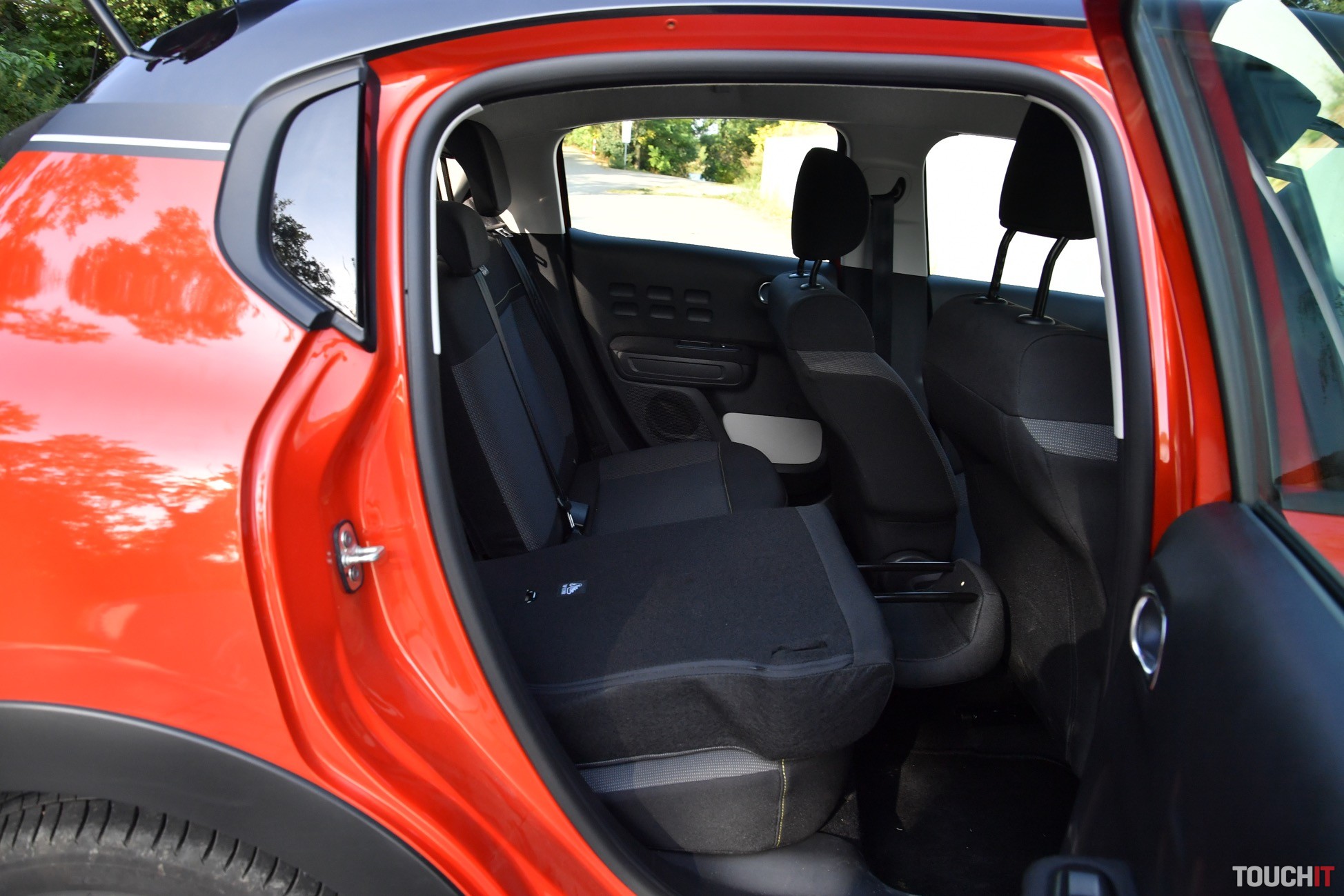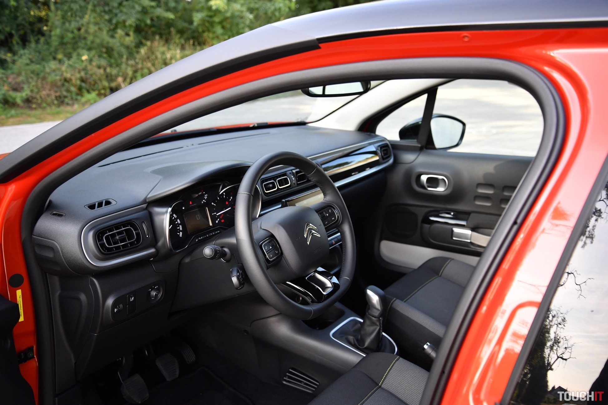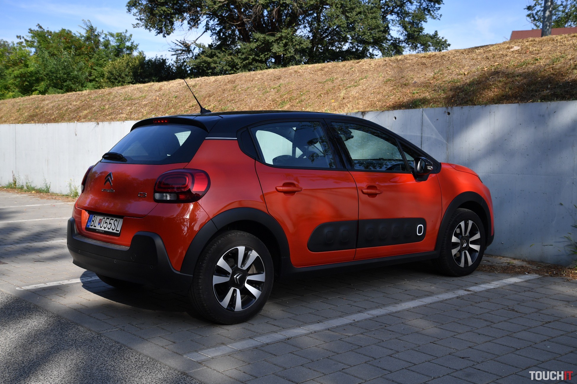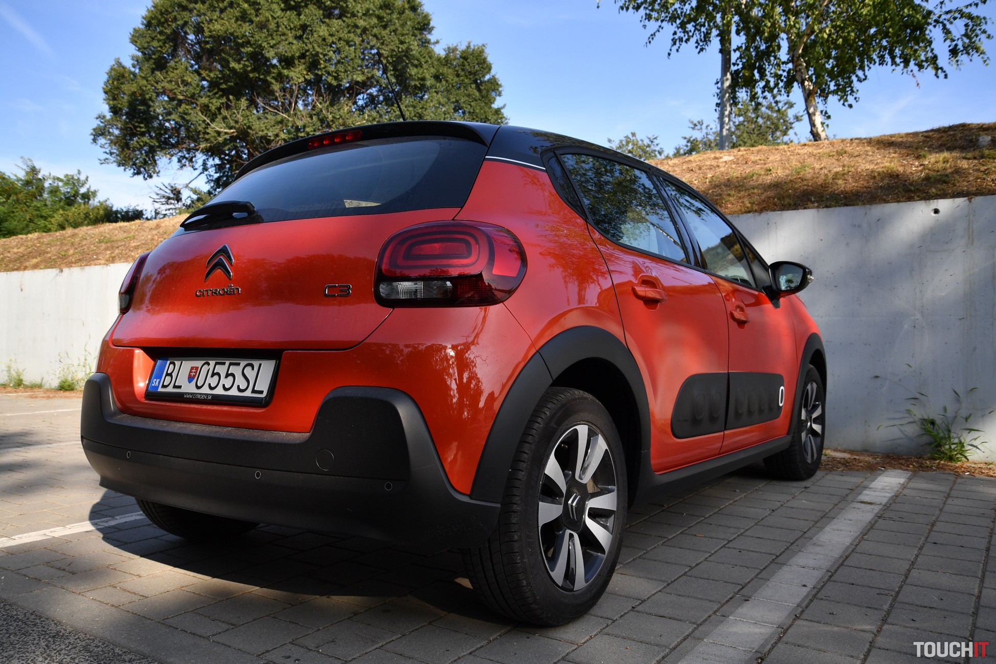 V podstate je to jedno, nová C3 vyzerá veľmi dobre, je svieža a energická. Testovaný model si ma získal aj farebným prevedením – oranžový (POWER) základ je pretkaný čiernymi (ONYX) doplnkami, čo vo výsledku vyzerá veľmi dobre (farebných kombinácií je až 36). Čierna je aj strecha, ktorá má v strede efektný prelis. C3 nie je autom, ktoré zapadne do davu, je výrazná a tak jej to pristane. Síce nejde o crossover, ale sú tu určité prvky, ktoré to môžu evokovať. Spodok karosérie chránia plastové lemy, ktoré sú doplnené o Airbump nárazníky po oboch stranách. Tie prechádzajú od predných dverí na zadné a ich úlohou je chrániť dvere pred poškodením. Na preplnených parkoviskách to určite oceníte. Ako celok pôsobí C3 veľmi dobre, ale nie každému takýto výrazný dizajn vyhovuje.