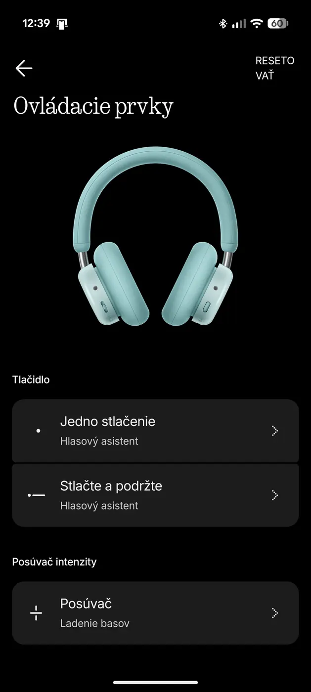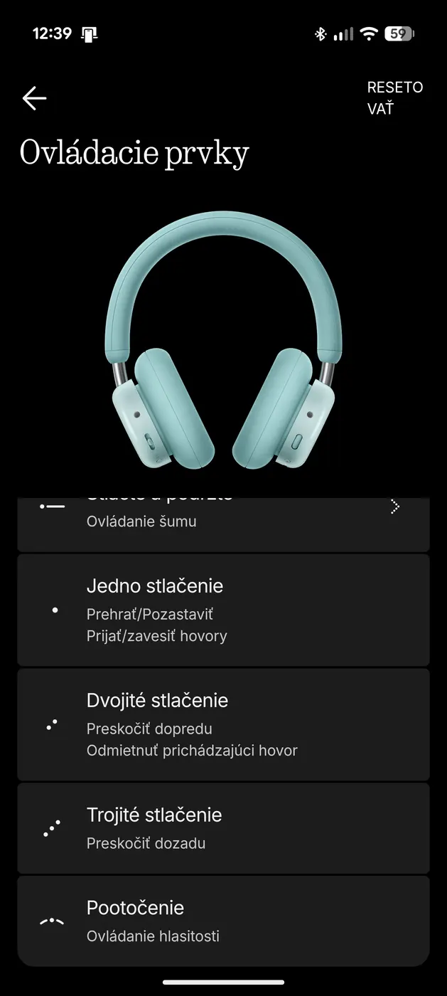 | Ovládanie | Funkcie ovládania | Koliesko hlasitosti, slider basov/výšok, tlačidlá pre ANC, prehrávanie, asistenta |