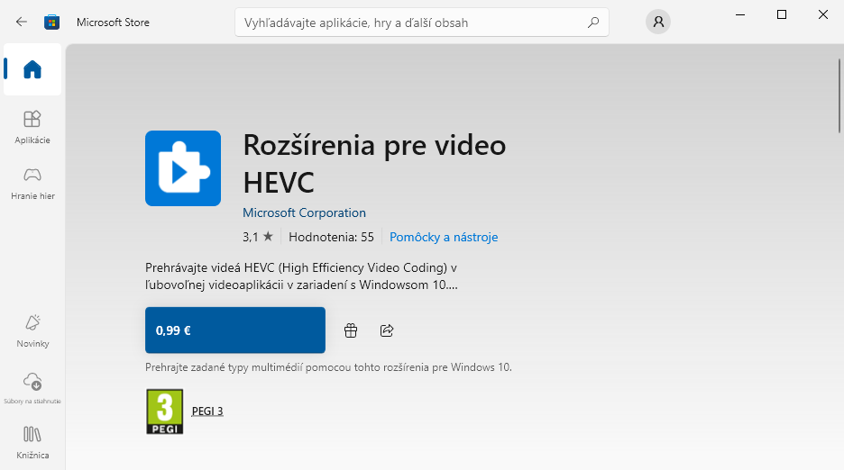 Pokiaľ máte záujem, poplatok (1 euro) môžete uhradiť svojpomocne. Stačí otvoriť cez menu Štart integrovaný obchod Microsoft Store a vyhľadať si v ňom dva pluginy v podobe „Rozšírenia pre video HEVC“, čo je samotný spoplatnený kodek a následne „Rozšírenie pre obrázky HEIF“, ktoré podporu týchto obrázkov integrujú do systému (nainštalovať je nutné obe rozšírenia).