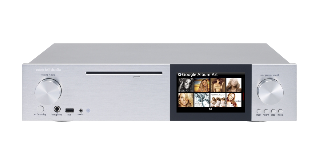 Cocktail Audio X40 (CA-X40) existuje v striebornom a čiernom vyhotovení. V prednej časti má farebný 5-palcový displej, na ktorom sa zobrazujú ikony menu alebo názvy prehrávaných skladieb. Osobne by som uvítal dotykový displej s intuitívnym ovládaním, CA-X40 ale používa klasické ovládanie masívnym otočným prvkom na pravej strane. Je vyhotovený z hliníka a je to dobrý pocit vyberať si s ním voľby a zastavovať/spúšťať prehrávanie. Pod ním je štvorica tlačidiel na voľbu vstupu, návrat o položku spať, zastavovanie prehrávania a vstup do menu.