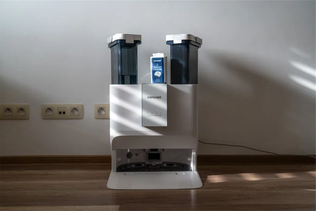 Concept VR4130 má multifunkčnú dokovaciu stanicu. Vysávač sa do nej vyprázdni po vysávaní, umyje si mopovací pás, doplní si vodu a pás si následne vysuší horúcim vzduchom. Dokovacia stanica ponúka aj zásobník na čistič s automatickým dávkovaním. Nádobky na čistú a špinavú vodu a aj vrecko na prach majú objem 3,5 litra.
