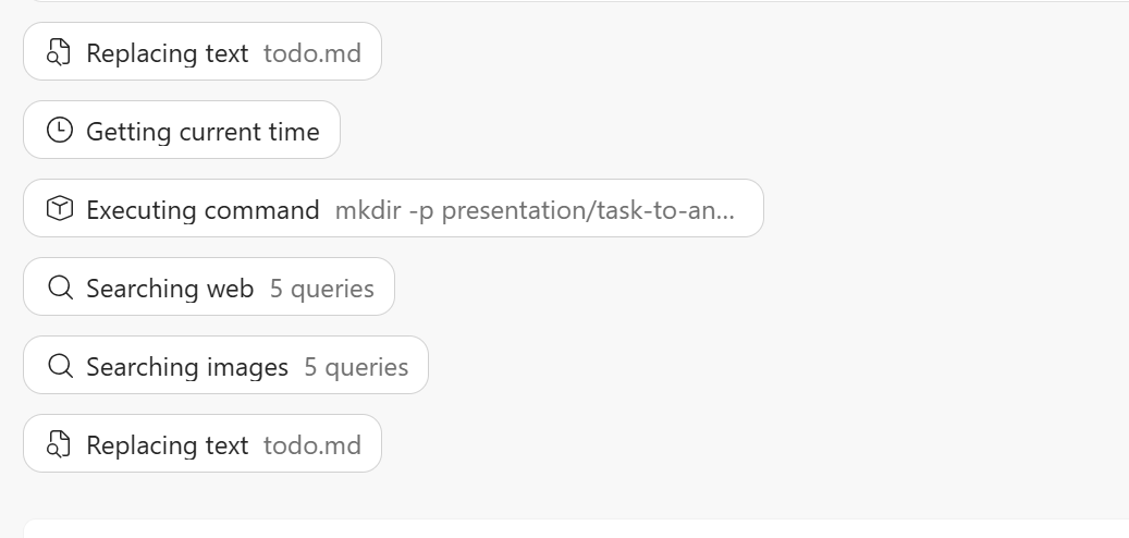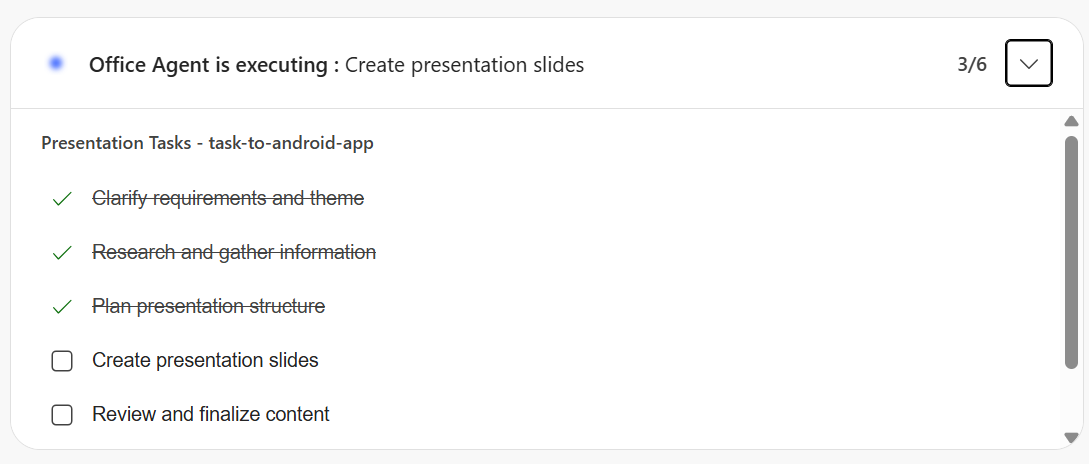 Zaujímavosťou na tom nie je to, že vytvorí obsah z vášho zadania, ale že funguje v agentovom režime. Napríklad pri tvorbe prezentácií vložíte dokument alebo obsah do príkazového riadku s obsahom konkrétnej prezentácie a následne sa začne proces tvorby.