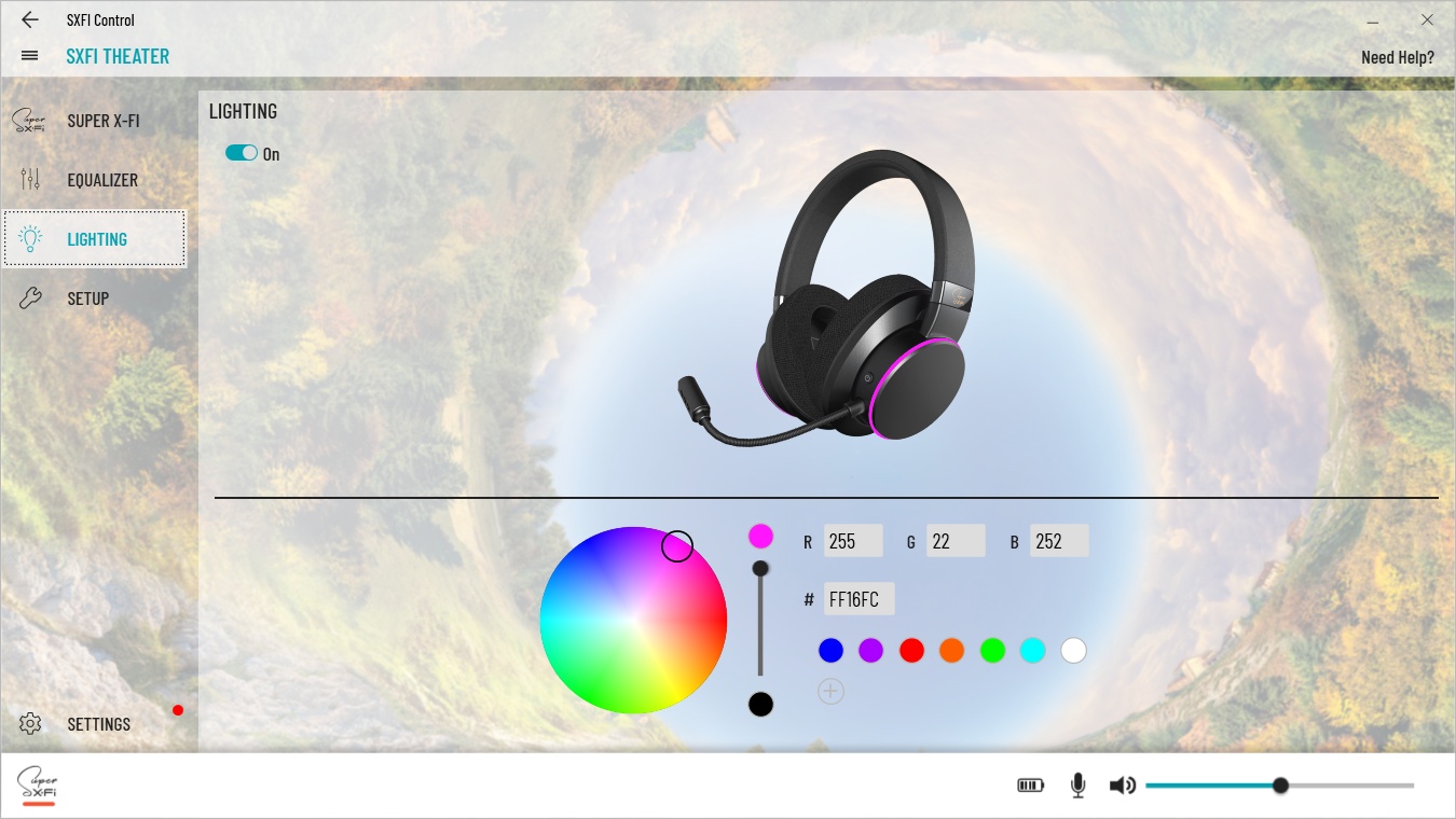 Spojitosť s herným svetom môžeme nájsť s LED lemovaním kruhových mušlí. Je decentné, žiadne krikľavé žiarenie a cez aplikáciu SXFI Control si vyberiete vlastné podsvietenie zo 16 mil. stupnice. Dá sa vybrať aj intenzita a mať tak nastavenú úroveň svetla. Toto je niečo, bez čoho by sme sa mnohí zaobišli, avšak nijako to neprekáža.