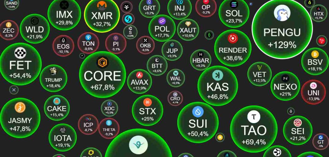 Crypto Bubbles ukáže, ktorým kryptomenám sa darí