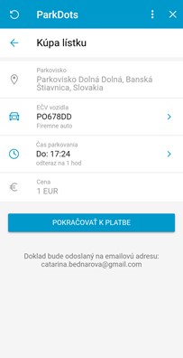 Stačí si otvoriť mobilnú aplikáciu ČSOB SmartBanking, v nej na spodnej lište otvoriť záložku SmartSlužby+ a v nej vybrať službu ParkDots. Následne si priamo v prostredí aplikácie jednoducho nájdete parkovisko, kde chce zaparkovať a prostredníctvom platby z účtu zaplatíte vopred parkovné za čas, ktorý plánujete na parkovisku parkovať. Na kúpu parkovacieho lístka cez ČSOB aplikáciu zadávate iba EČV vozidla, pre ktoré potrebujete zaplatiť parkovné. Daňový doklad o platbe si môžete nechať poslať rovno na email.