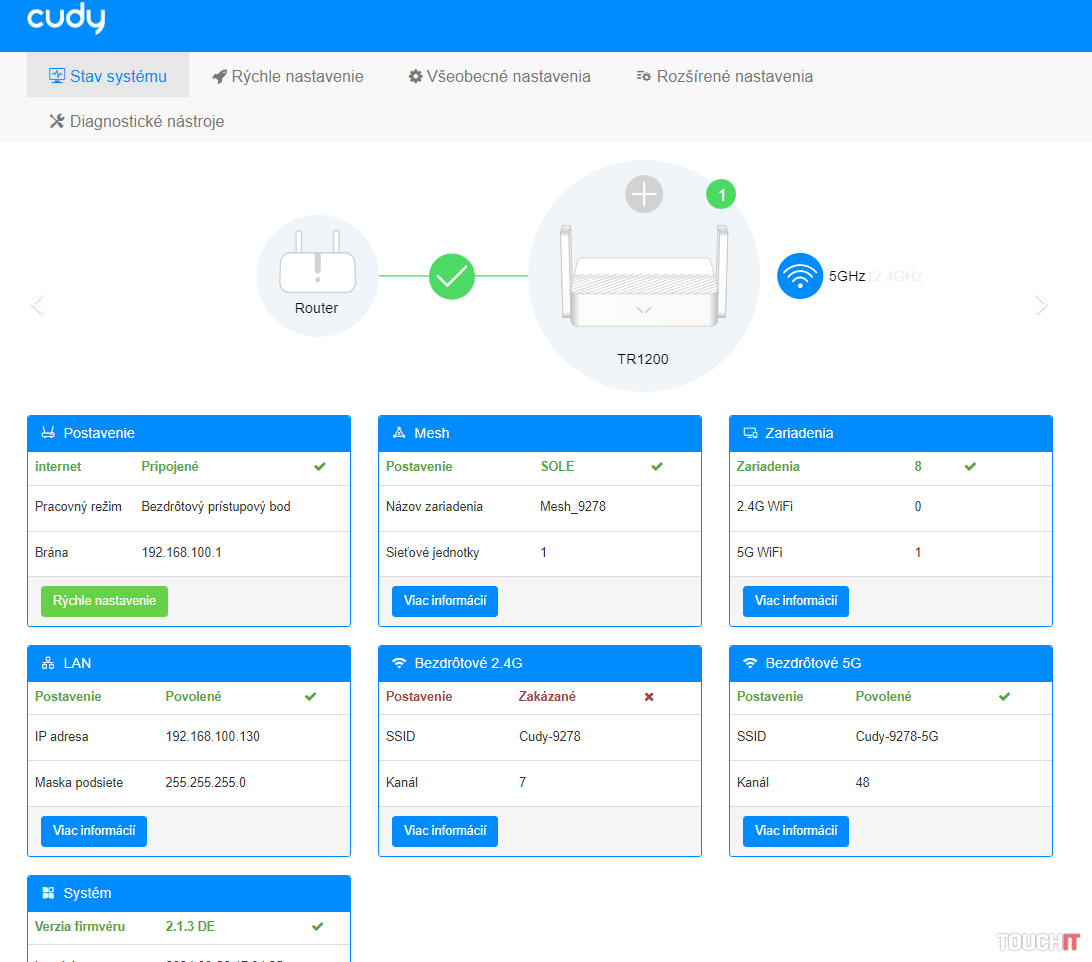 Z pohľadu schopností a možností nastavenia sú tu všetky podstatné režimy a možnosti konfigurácie, aké poznáme pri bezdrôtových smerovačoch. Vďaka tomu je možné aktualizovať firmvér, nastavovať spôsob pripojenia cez DHCP server alebo je tu podpora DNS serverov Cloudflare, Google a Quad9.