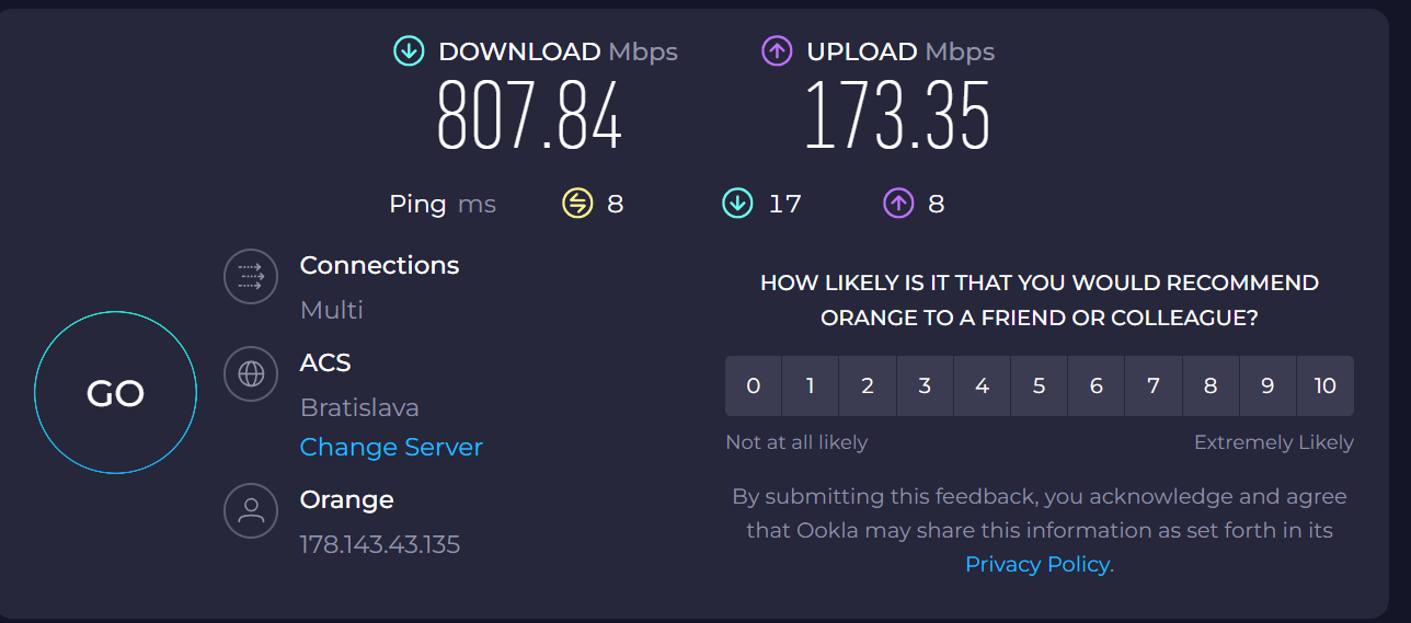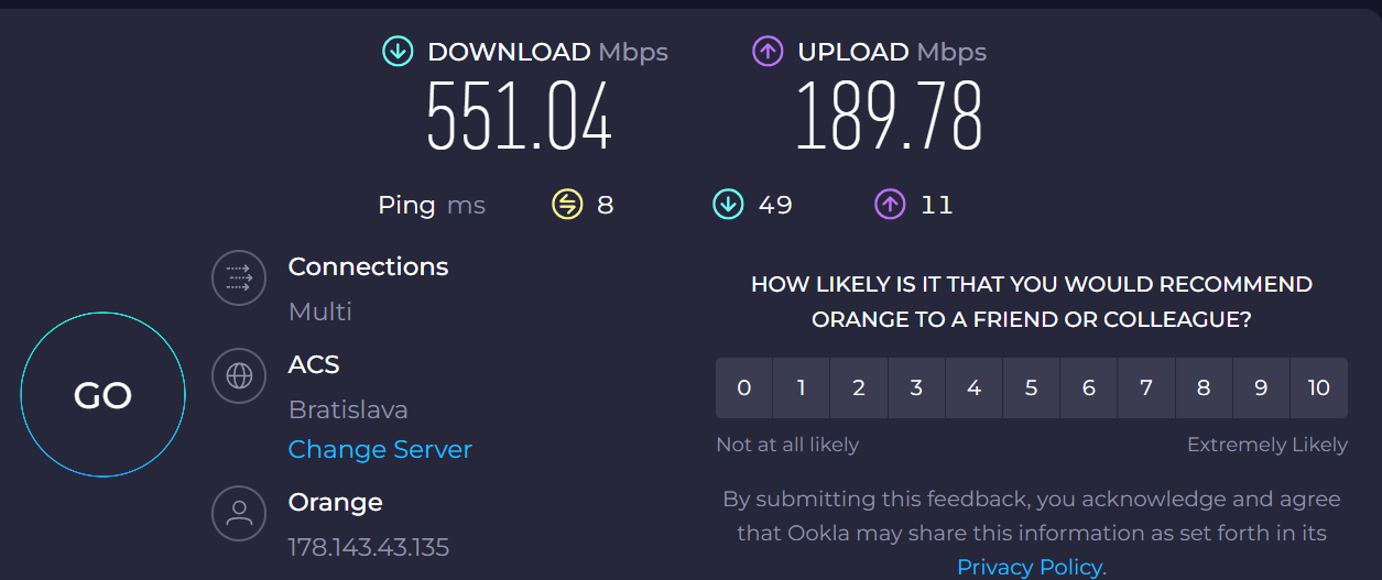 Už počas bežného testovania v rámci pripojenia na internet, nahrávania súborov do cloudu alebo sťahovania objemných hier, bolo vidieť zvýšenú prenosovú rýchlosť. Testovali sme na zariadení podporujúcom štandard Wi-Fi AX. Výsledky je vidieť na obrázkoch nižšie, pričom nižšie rýchlosti sú dosahované v rámci zariadenia s podporou AC a vyššie rýchlosti s testovaným routerom a pripojením na štandard AX.