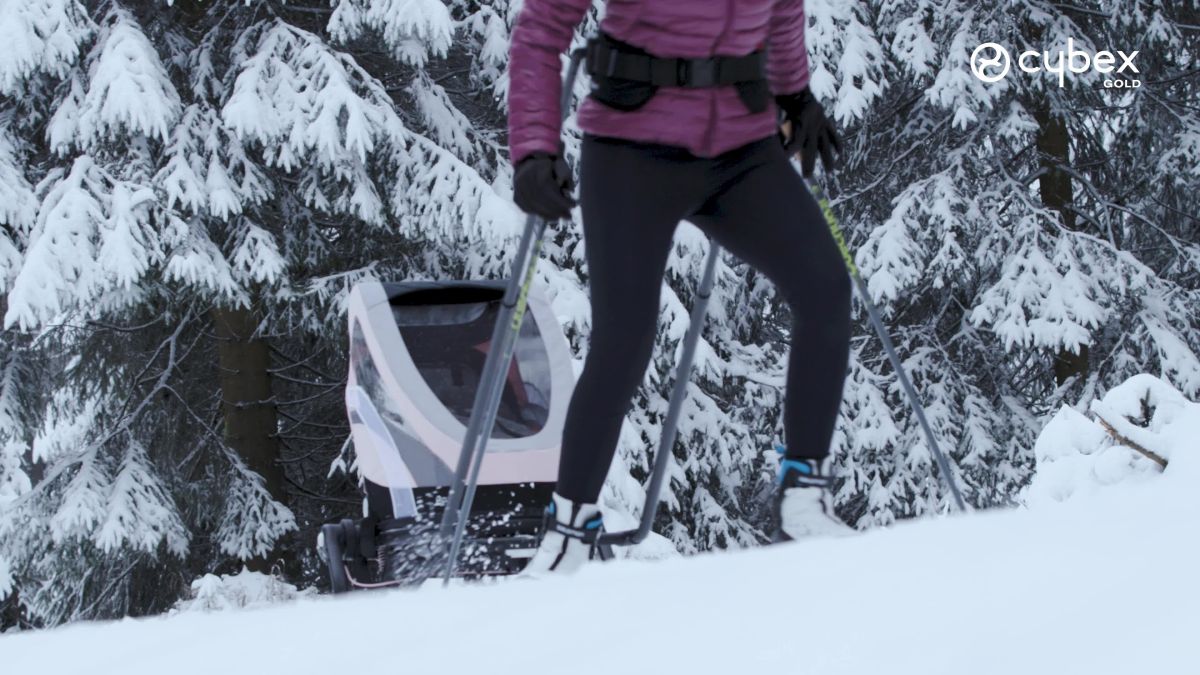 V zimnom období môžete využiť Cybex Zeno aj na bežkovanie. V takom prípade vymeníte zadné kolesá za lyžiny a predné koleso odpojíte, pričom kočík si pripevníte k pásu pomocnými ramenami. Prípadne môžete kočík po snehu aj tlačiť, v takom prípade nasadíte lyžiny a predné koleso necháte pripevnené.