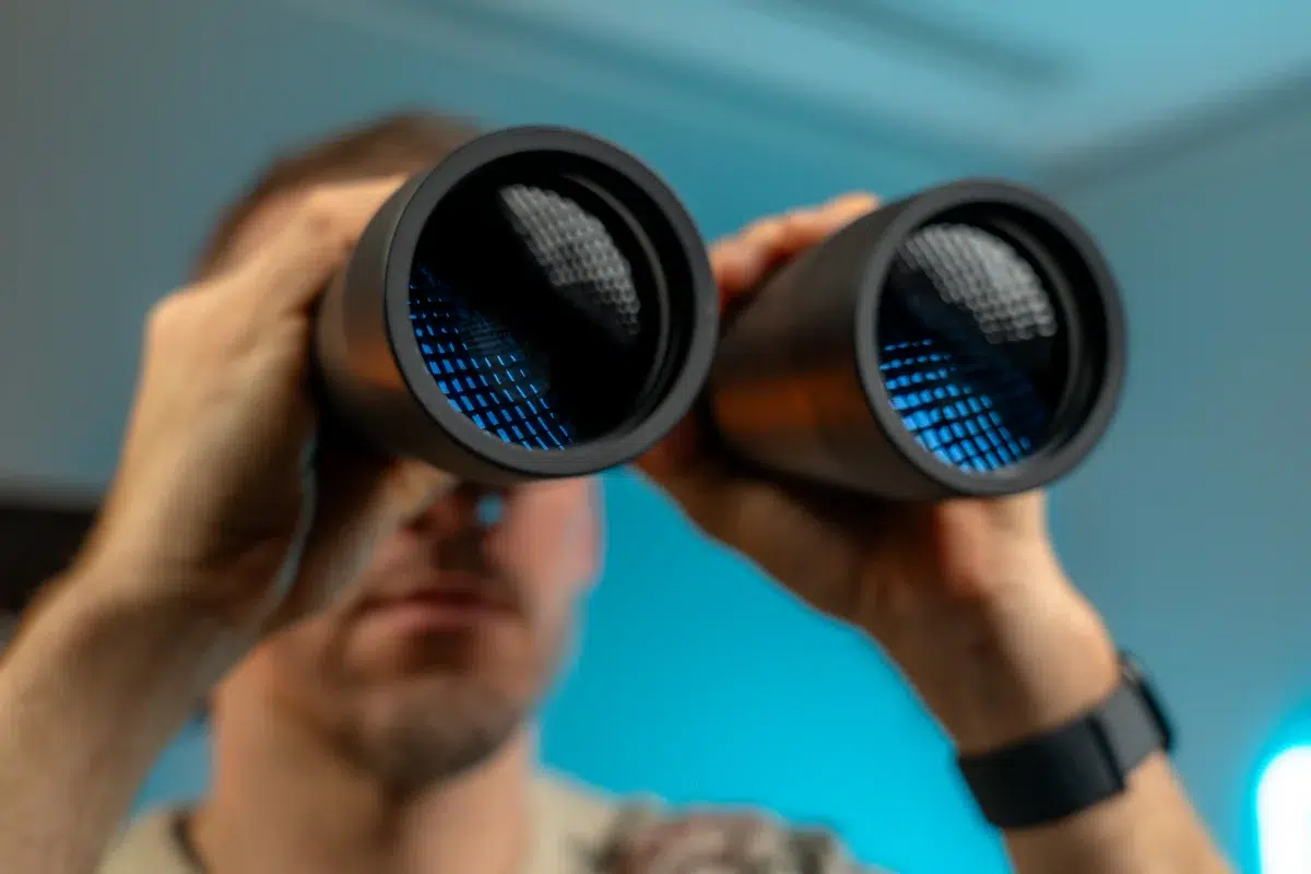 Zaostrovanie objektov prebieha centrálnym kolieskom, ostrosť je podporená samostatnou dioptrickou korekciou pre každé oko. Aj bez perfektného zraku, tak uvidíte to, čo potrebujete. Konštrukcia je vodoodolná, má pogumovaný povrch, ktorý dokáže odolávať dažďu či prachu a dobre zapadne do dlaní.