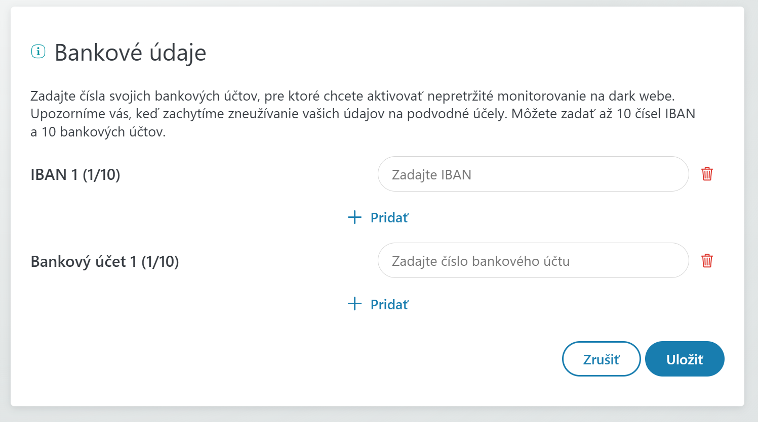 Okrem toho môžete sledovať aj pokusy o zneužitie vašich bankových účtov a celkovo môžete do služby pridať až 10 IBAN čísiel. Ide o službu, ktorá nepretržite monitoruje všetky vaše zadané údaje a akonáhle dôjde k podozrivej aktivite, dostanete na to upozornenie.