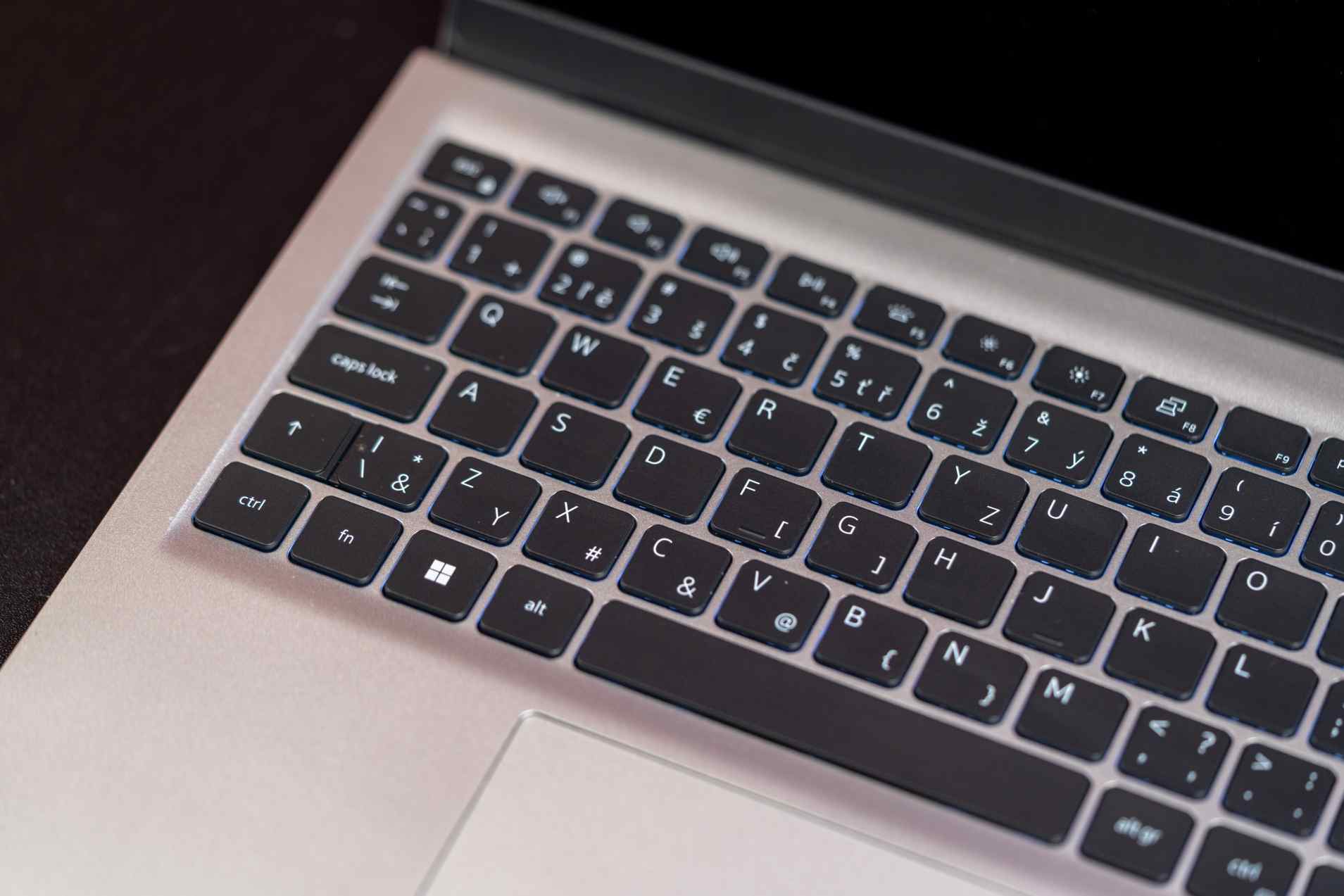 Má 2 stupne bieleho podsvietenia, čo je charakteristické pre túto značku. Pochváliť ale treba jasnosť a čitateľnosť podsvietenia nielen v tmavých podmienkach, ale aj pri umelom osvetlení alebo na dennom svetle. Touchpad sa dobre používa a poskytuje presný spôsob ovládania aj bez myši.