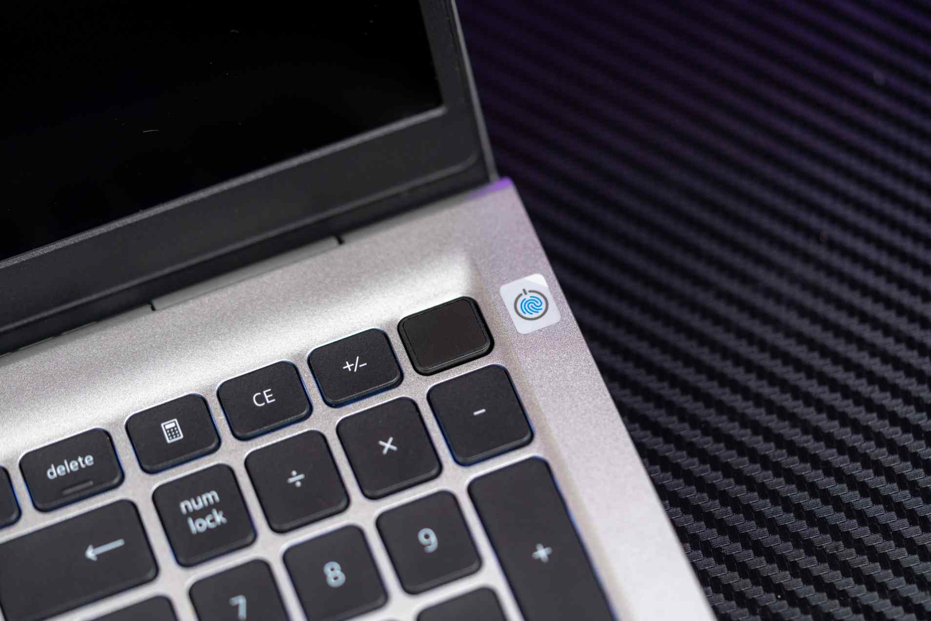 Tlačidlo na vypnutie je súčasťou numerického bloku a má silnejší stisk. Nestlačíte ho omylom a zároveň slúžia ako čítačka odtlačkov prstov. Je to jediný spôsob, ako sa biometrický prihlásiť do systému. Funguje bezchybne a rýchlo, takže je to neraz vhodnejší spôsob, ako používať infračervenú kameru. Webová kamera má fyzický kryt na zaistenie súkromia.