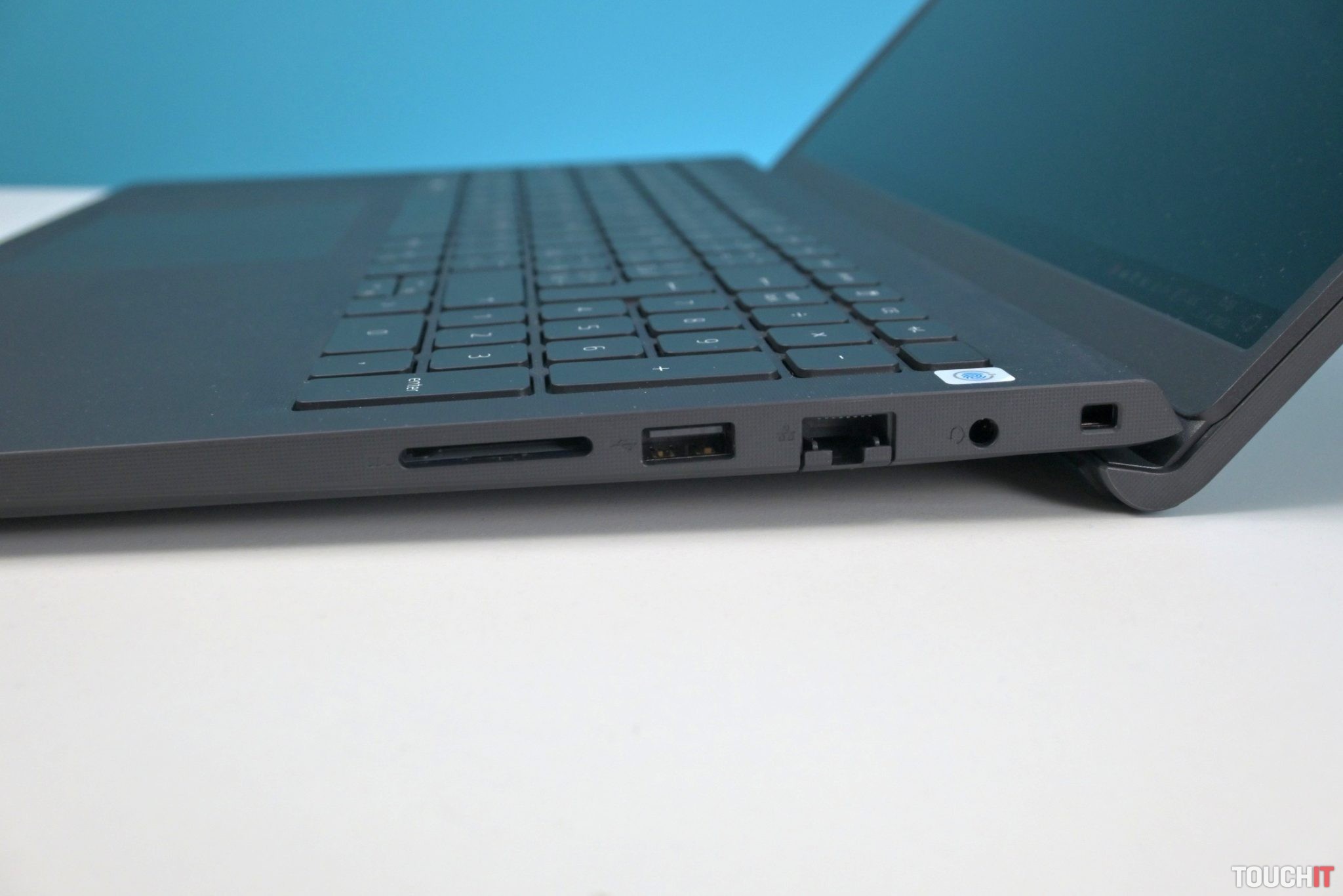 Do systému sa dá prihlásiť cez čítačku odtlačkov prstov. Je to zároveň tlačidlo na zapnutie. Má silnejší stisk a aj keď je opticky súčasťou numerického bloku, nestlačíte ho omylom. V režime úspory z neho spravíte tichý počítač, to oceňujem všeobecne ale aj pri pozeraní filmov. Notebook je dimenzovaný ako kancelársky, čo vo výsledku znamená, že neruší pri nenáročnom používaní.