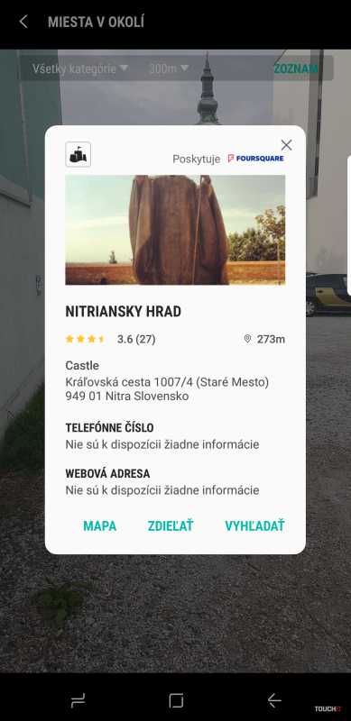 Ďalšou časťou je Bixby Vision. Vision pritom dokáže rozpoznať, na čo sa cez kameru asi pozeráte a zároveň vie vyhľadať podobné fotografie na internete. Tiež si poradí s QR kódmi alebo etiketou značkového vína, o ktorom vám povie viac. Pripomeňme, že niečo veľmi podobné predstavila spoločnosť Sony vo svojom telefóne Xperia už pred pár rokmi, ale s využitím služieb tretích strán. Aj teraz je to podobné, Samsung spolupracuje napr. s Foursquare, Pinterest alebo Vivino. My sme si službu rozpoznanie miest vyskúšali v Bratislave a v Nitre. Treba konštatovať, že systém rozpoznávania miest dáva do popredia reštaurácie pred pamätihodnosťami. V Bratislave sme rozpoznávali Bratislavský hrad, reštauráciu AuCafe a Most SNP. V prípade Mosta SNP nám ponúkla na rozpoznanie reštauráciu UFO, s AuCafe nebol žiadny problém a v prípade hradu sme skončili opäť pri reštaurácii UFO. V tomto prípade to bolo pravdepodobne spôsobené tým, že naša vzdialenosť od hradu bola väčšia ako 300 metrov a najbližšia reštaurácia bolo práve UFO. Systému Bixby sa jednoznačne na pravom brehu Dunaja páčila reštaurácia UFO a v starom meste zase SkyBar. Ako podobné fotky k Dómu svätého Martina nám Bixby vybral celkom podobné stavby v rôznych krajinách. Po presune do Nitry sme vyskúšali nájsť Divadlo Andreja Bagara a Nitriansky hrad. Treba povedať, že bol celkom úspešný, ale opäť sa mu páčili viac reštaurácie než pamätihodnosti. Celkovo Bixby Vision pracuje skoro správne, ale opäť to asi nie je niečo, za čo by ste si Samsung Galaxy S8 už aj utekali kúpiť. Je to vlastnosť navyše, ktorú pravdepodobne oceníte hlavne v zahraničí, ak teda budete mať dáta – to je nevyhnutná podmienka na fungovanie tohto systému. Vyskúšali sme samozrejme aj rozpoznanie etikety vína. Úspešne. Bixby sa dá využiť aj ako pripomienkovač, ktorý rozpozná kontext vašej poznámky a v správnom čase a mieste sa vám pripomenie. Toto nám zatiaľ nefungovalo správne. Bude zrejme potrebné počkať na oficiálne spustenie predaja tohto telefónu a tiež môže byť problém s naším jazykom, aj keď sme sa snažili použiť angličtinu. 1. strana: Galaxy S8 vs. Galaxy S8+ 2. strana: Galaxy S8 všeobecne 3. strana: Čo nájdete v krabici? 4. strana: Nekonečný displej a dizajn 5. strana: Vylepšený multitasking 6. strana: Kamery a ovládací softvér 7. strana: Prihlásenie do telefónu 8. strana: Výdrž na batériu 9. strana: Samsung Connect 10. strana: Bixby 11. strana: VyhodnoteniePodobné články