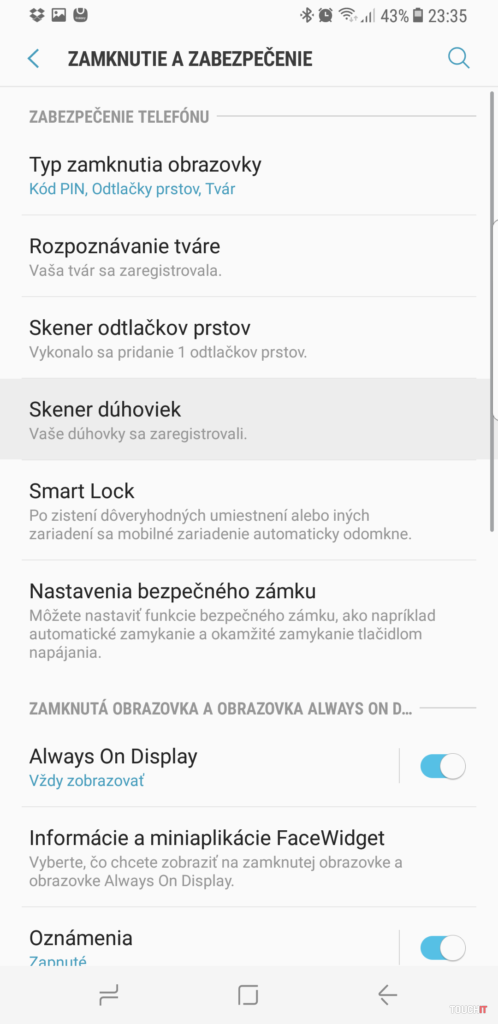 Vylepšila sa funkcia Allways On Display – na vypnutom displeji stále vidíte čas, ale teraz môžete aj riadiť prehrávanie hudby alebo sa pozrieť na to, ako je nastavený budík a iné funkcie. Allways On Displej spotrebováva len málo elektrickej energie navyše. Čo sa bude zobrazovať nájdete v nastaveniach.