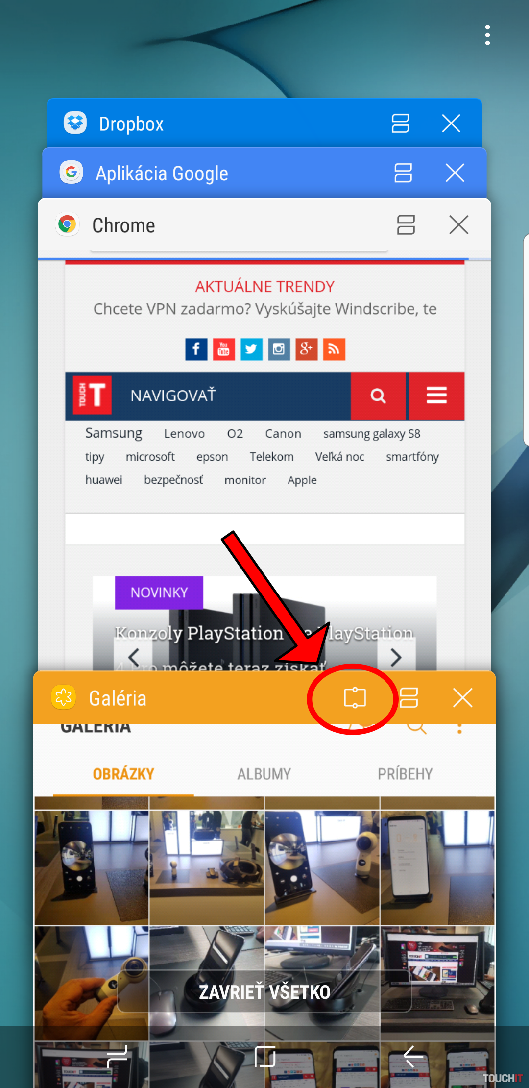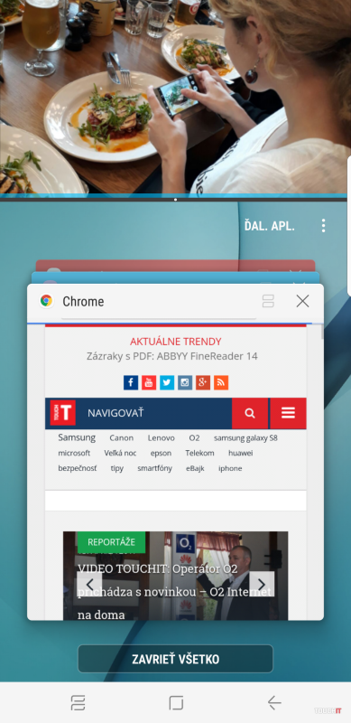 Pomocou neho si nastavíte presnú polohu tejto aplikácie, v našom prípade Galérie, napr. do hornej časti obrazovky. V ostávajúcej ploche môžete ďalej pracovať s ostatnými aplikáciami. Je to spôsob, ako napr. sledovať video a popritom ďalej robiť to, čo potrebujete so smartfónom. Je to pekné, ale len za toto si asi Galaxy S8 kupovať nebudete. 1. strana: Galaxy S8 vs. Galaxy S8+ 2. strana: Galaxy S8 všeobecne 3. strana: Čo nájdete v krabici? 4. strana: Nekonečný displej a dizajn 5. strana: Vylepšený multitasking 6. strana: Kamery a ovládací softvér 7. strana: Prihlásenie do telefónu 8. strana: Výdrž na batériu 9. strana: Samsung Connect 10. strana: Bixby 11. strana: VyhodnoteniePodobné články