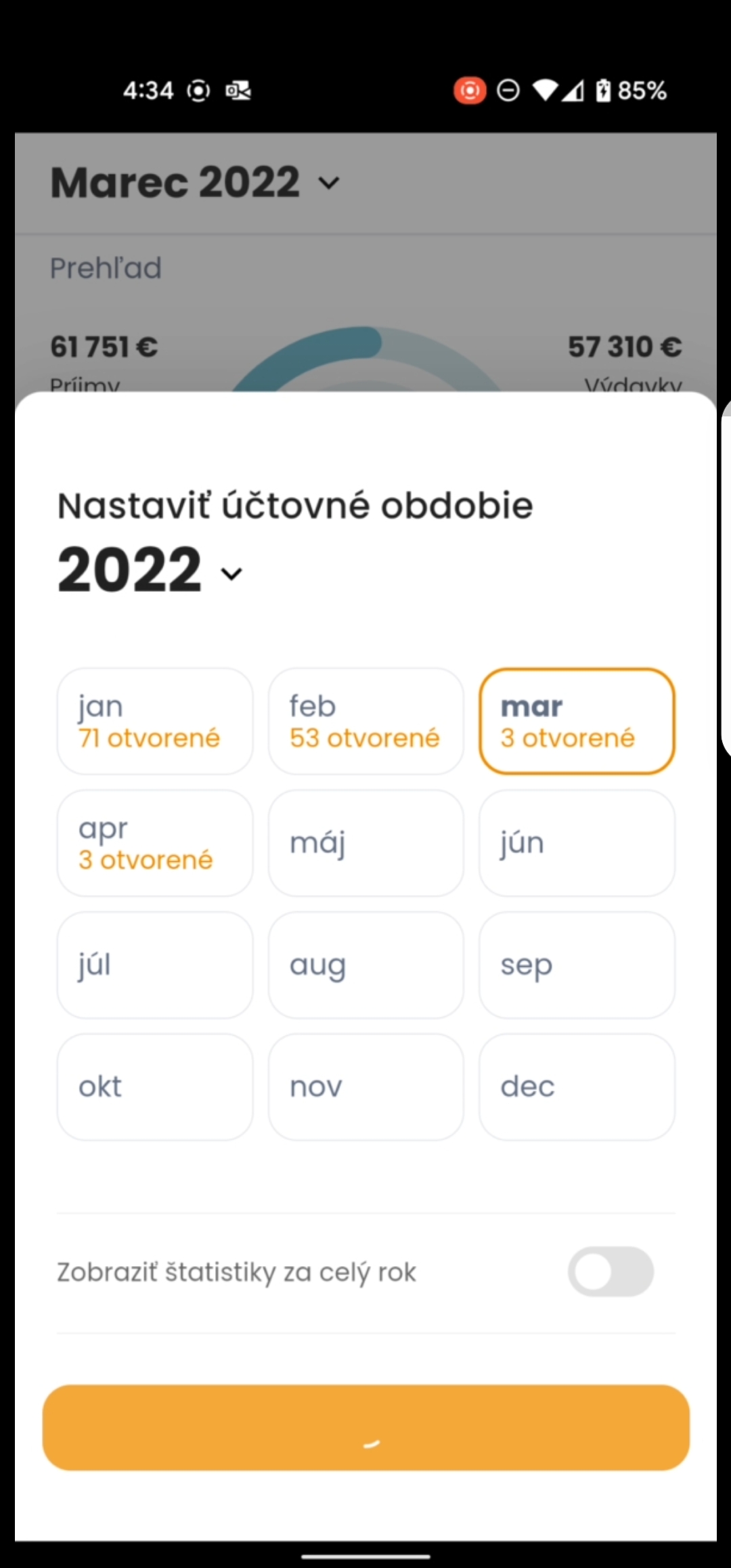 Navyše, v aplikácii DingoDot sa dá vrátiť k jednotlivých účtovným obdobiam a na prvý pohľad takto vidíte, koľko položiek nie je uzavretých. Rovnako sa dajú prehliadať štatistiky za celý účtovný rok.