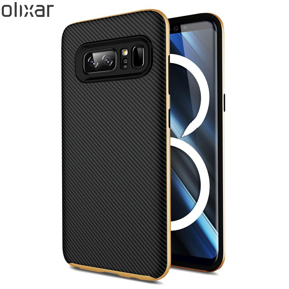 6,3-palcový Super AMOLED s rozlíšením 1440 × 2960. Dizajn je totožný ako v prípade Galaxy S8 a Note 8 je iba o niečo málo väčší ako S8+ Procesor: Exynos 8895 (Európa) / Snapdragon 835 (USA) RAM a úložisko: 6 GB RAM a 64 GB + podpora microSD karty Zadný fotoaparát: 2 × 12 Mpx, širokouhlý fotoaparát má clonu f/1,7, teleobjektív má clonu f/2,4 a umožňuje 2× optický zoom. Oba senzory ponúkajú OIS Predný fotoaparát: 8 Mpx, f/1,7, automatické zaostrovanie Batéria: 3300 mAh, nabíjanie pomocou USB-C portu alebo bezdrôtovo Rozmery: 162,5 × 74,6 × 8,5 mm Cena: „takmer 1000 eur“ Dostupnosť: September Farby: Midnight Black, Maple Gold, neskôr prídu na trh aj Orchid Grey a Deep Sea Blue Doplnené 1. 7.: Internetom kolujú rendery spoločnosti Olixar, ktorá je výrobcom príslušenstva. Vo svojom portfóliu už má ochranné obaly, ktoré si môžete predobjednať a sú určené pre zatiaľ neoznámený Galaxy Note 8. Dizajn zodpovedá špekuláciám, ktoré kolovali internetom pred pár dňami a informovali sme o nich aj v tomto článku.