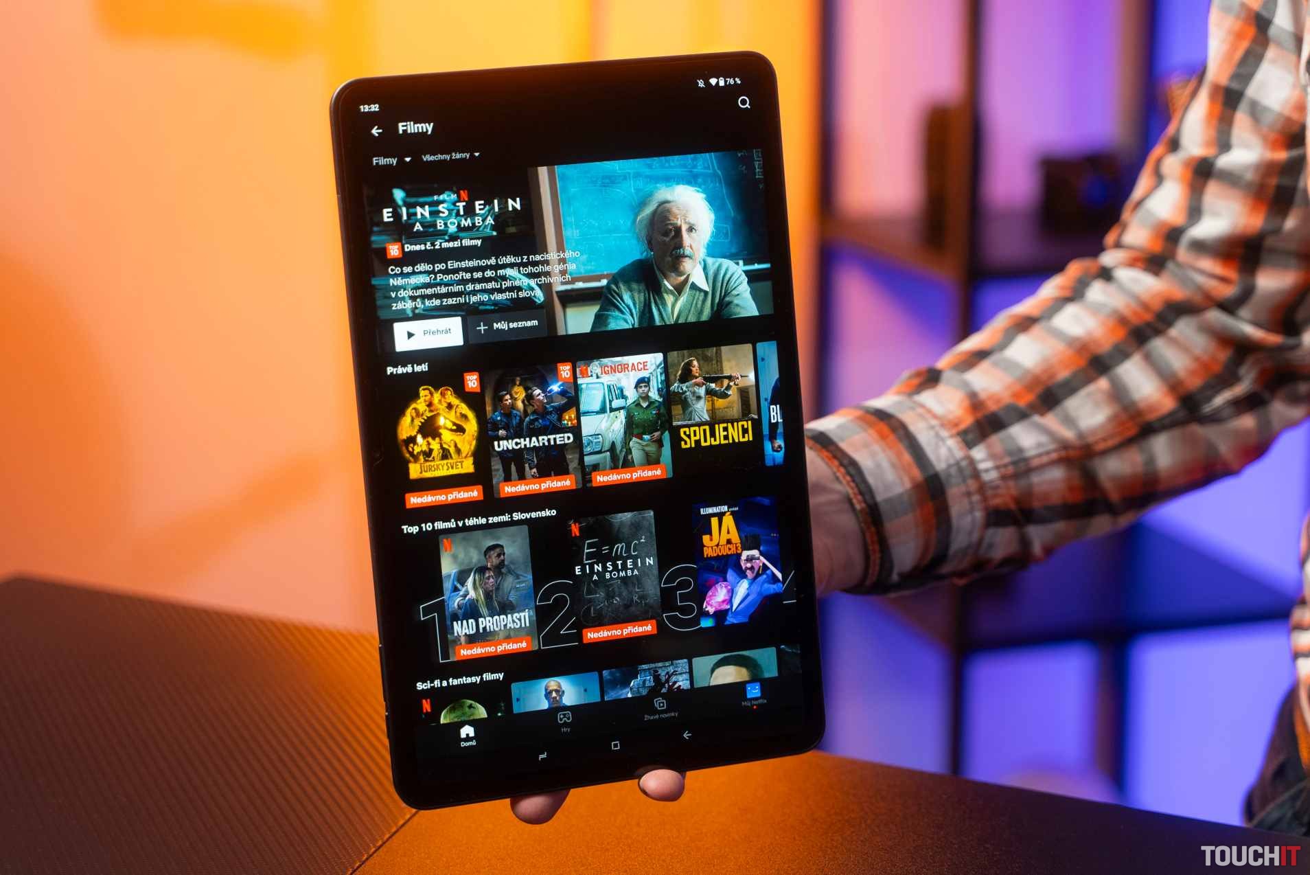 Ideálne použitie je v obale, no vtedy už nebude tablet taký tenký. Hliníkové telo je precízne spracované a okraje displeja sú dostatočne široké na to, aby sa dal tablet komfortne používať na výšku aj na šírku. Pri videohovoroch oceníte umiestnenie webovej kamery na dlhšiu hranu. Tým sa dá tablet použiť v režime bežného monitora alebo notebooku. Okrem konektora USB-C je tu aj audiokonektor na pripojenie slúchadiel, a ten sa nachádza v spodnom rohu tabletu.