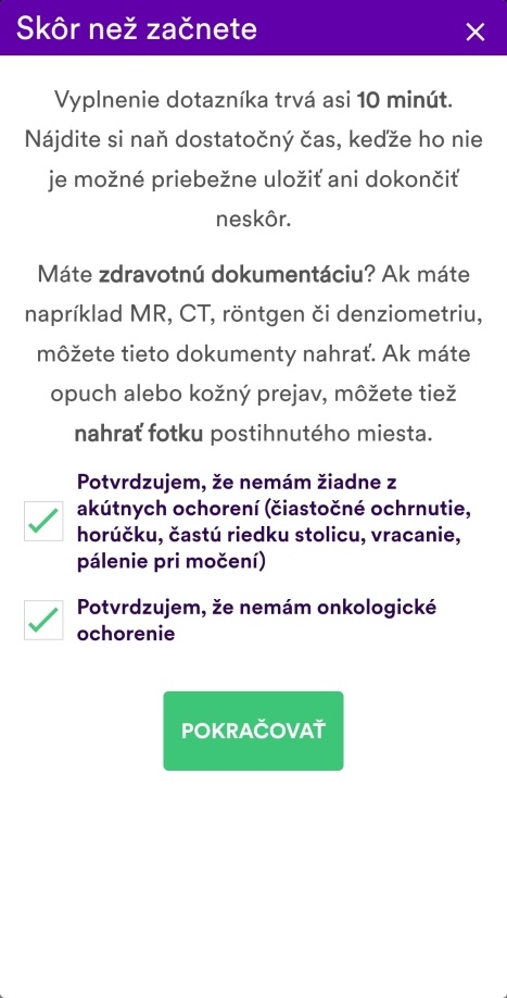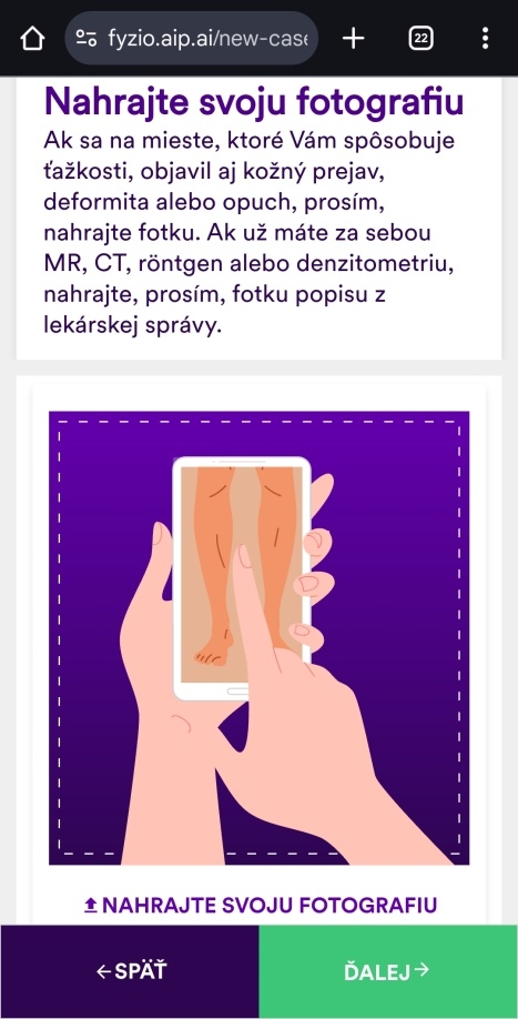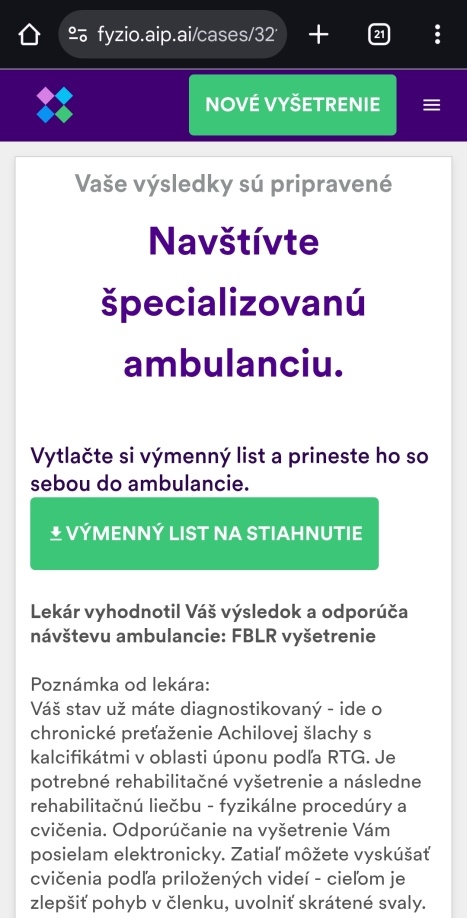 AIP FYZIO vám pomôže nájsť riešenie na vaše zdravotné problémy. Nemusíte čakať na konzultáciu s lekárom v ambulancii – stačí zadať svoje príznaky a vyplniť spomínaný dotazník. My sme si to vyskúšali a vyplnenie tohto dotazníka nám zabralo 10 minút. Dotazník pripomína skutočný rozhovor pacienta a lekára, sú to bežné otázky aké dostanete v ambulancii.