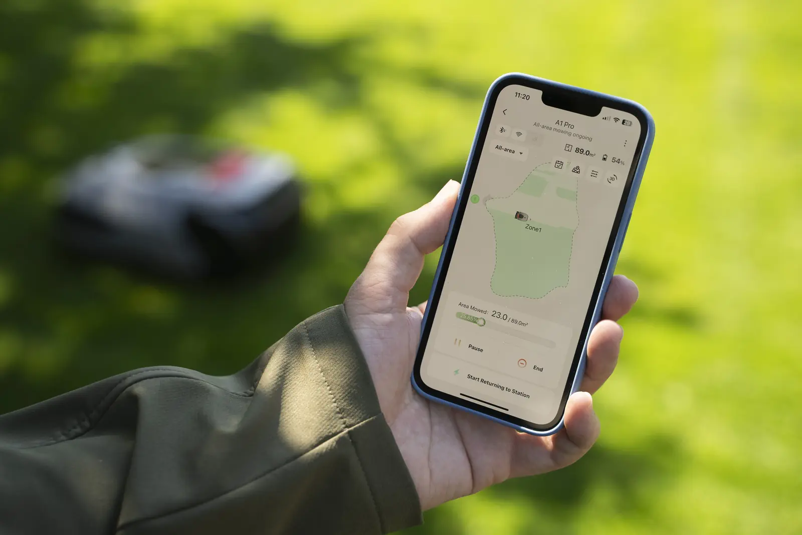 Po vytvorení mapy a zadefinovaní zakázaných zón môžete kosačku pustiť kosiť. Na výber je niekoľko režimov kosenia, ako je kosenie celej plochy, kosenie po obvode, zónové kosenie, kosenie na zvolenom mieste alebo manuálne kosenie, keď ju ovládate cez smartfón.