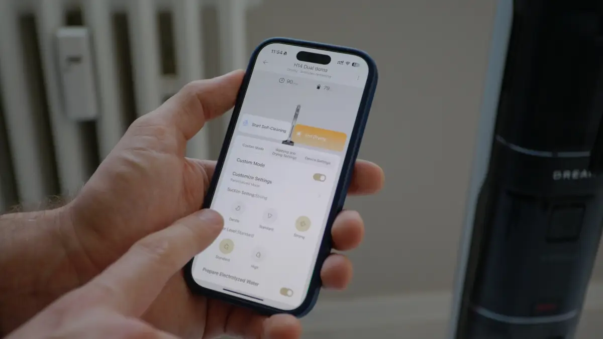 Ďaľšou nevídanou vlastnosťou je možnosť zvoliť si prípravu elektrolyzovanej vody – túto voľbu nájdete v aplikácii, ako súčasť Prispôsobiteľného čistiaceho režimu. Pri hlbšom študovaní som zistil, že sa vlastne o nič nestaráte, mopovač urobí všetko za vás. Nádržka na čistú vodu obsahuje zariadenie, ktoré funguje na báze elektrického prúdu. Ten rozkladá vodu a v nej prirodzene obsiahnutú soľ na účinné čistiace zložky. Tento proces prebieha automaticky v mopovači a mal by vytvárať dezinfekčný roztok.