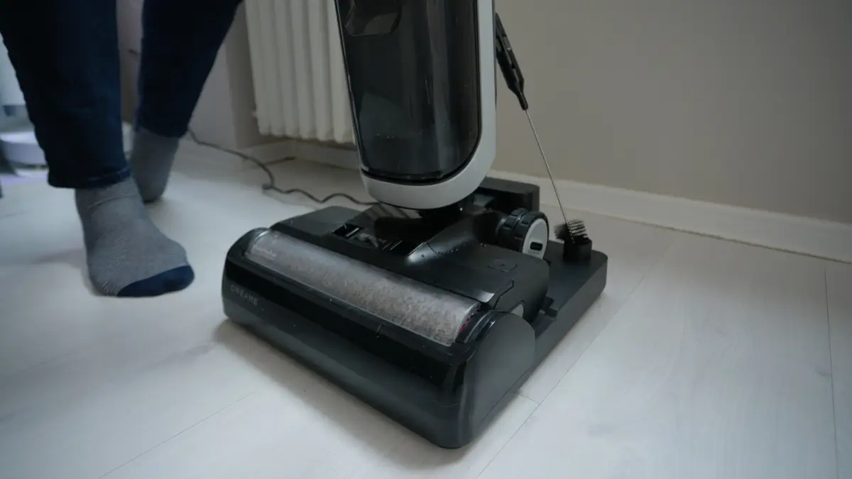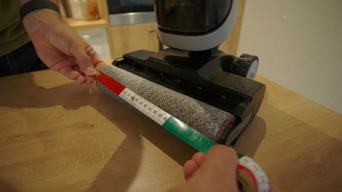 O odsávanie špinavej vody a nečistôt sa stará výkonný motor, ktorého sací výkon je až 18-tisíc pascalov, vďaka čomu si mopovač aj pri mojom testovaní poradil s nečistotami ako rozsypaná káva, ovsené vločky, zrnká ryže či psie chlpy. V hlavnom mopovacom nadstavci je valec, ktorý má šírku 26,5 centimetra a aj keď výrobca udáva, že umýva od okraja po okraj, v mojich testoch to vychádza tak, že ho limituje bok mopovacieho nadstavca a dokáže tak reálne mopovať zhruba jeden centimeter od okraja.
