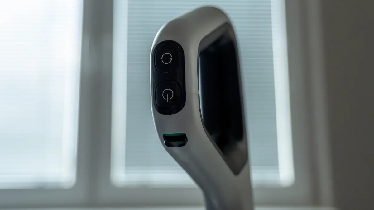 Tú je možné premeniť na tyčový vysávač, ale k tomu sa ešte v recenzii dostanem. Mopovač držíte za pevnú rukoväť, na ktorej sú tri tlačidlá a jeden prepínač, ktorými celé zariadenie ovládate. Mopovač však môžete pripojiť aj k mobilnej aplikácii Dreamehome, vďaka čomu získate ďalšie možnosti nastavení o ktorých si priebežne povieme.