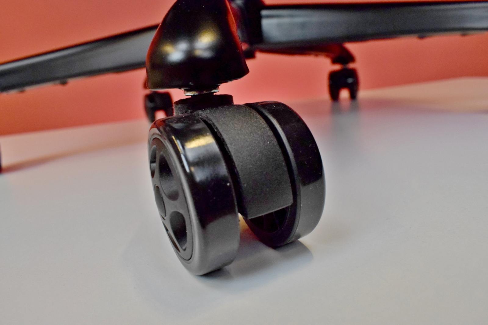 Ide o poctivú základňu s piatimi oceľovými ramenami, ktoré stoličke zabezpečujú veľmi dobrú stabilitu. Keď sa však pozrieme na 60 mm kolieska, tak tie sú nylonové, čiže sa nemusíte báť, že by vám poškriabali podlahu alebo parkety.