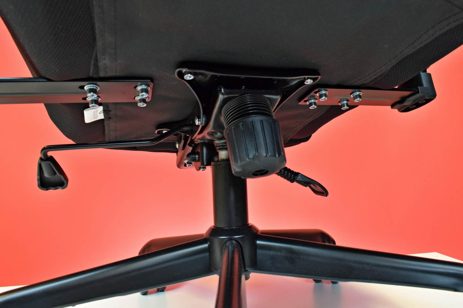Zo spodnej časti stoličky je možné nahmatať dve ovládacie páky. Jednou nastavíte výšku posedu (vpravo) a druhou sklon operadla (vľavo). V prípade posedu mám opäť malý problém s nastavením jeho maximálnej výšky, čo je akási daň za komfort a možnosti herných kresiel a stoličiek. Jednoducho ich maximálny zdvih nedosahuje zdvihu klasických kancelárskych stoličiek, takže pri sedení za pracovným stolom mám pomerne často pocit, že nejaký ten centimeter navyše by sa hodil.